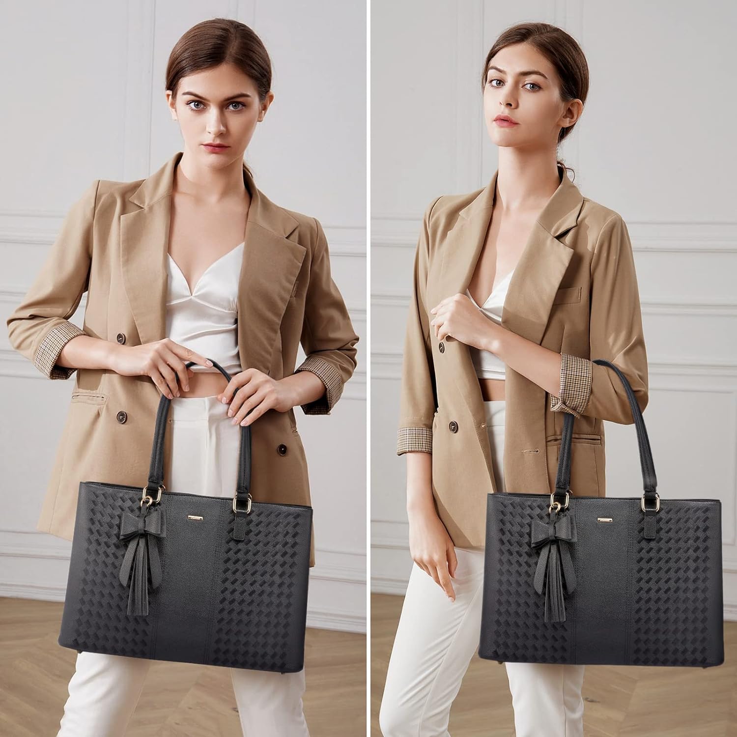 • ✓【Dimension & Chic Practical Tote Bag】Dimension of tote bag is 16.5" L * 6.1" W * 10.4" H; Weight: 2.67 lbs. The minimalist chic appearance makes it a work-ready and casual pick. Pair perfectly with casual outfit, formal outfit, high heel or flat.