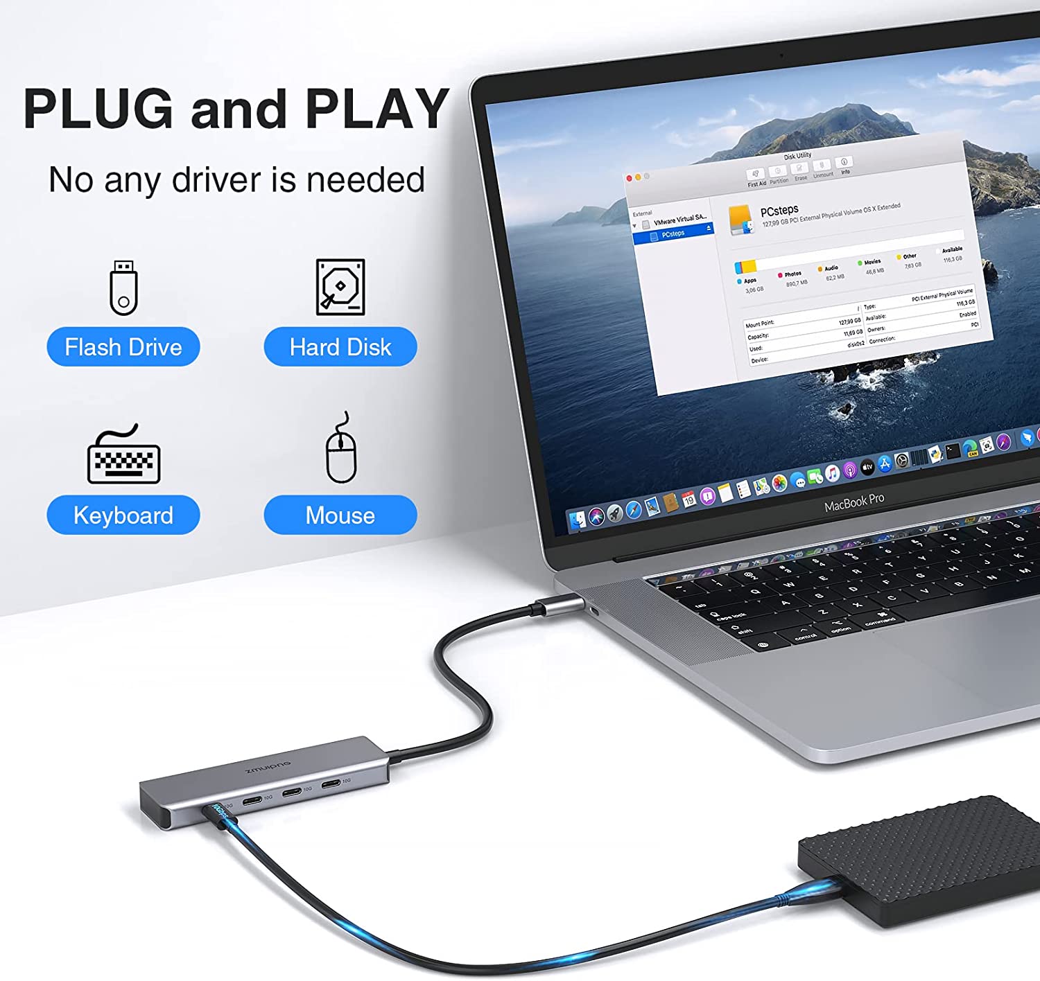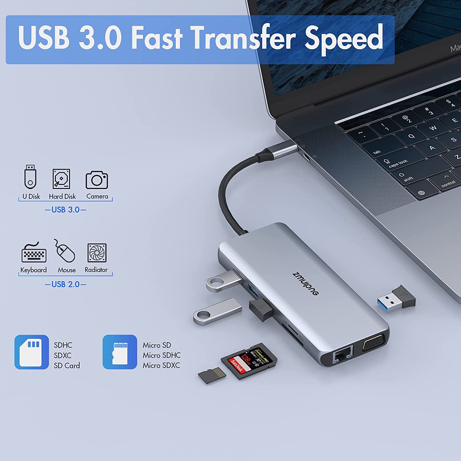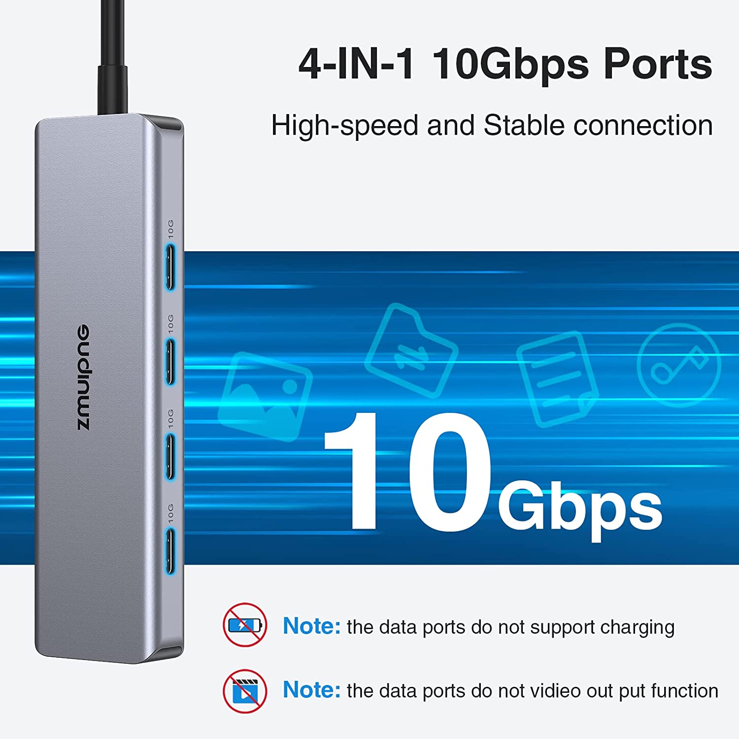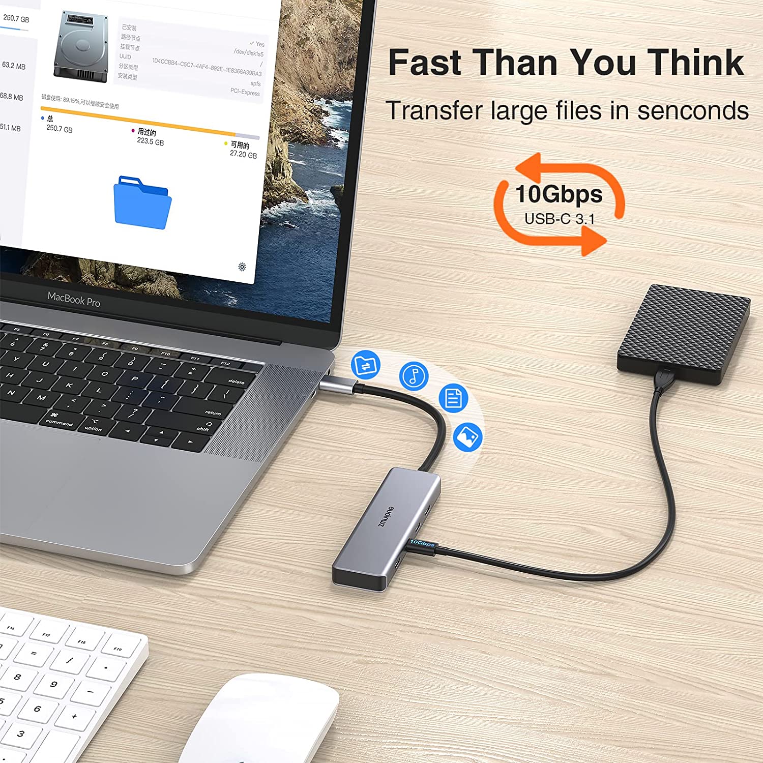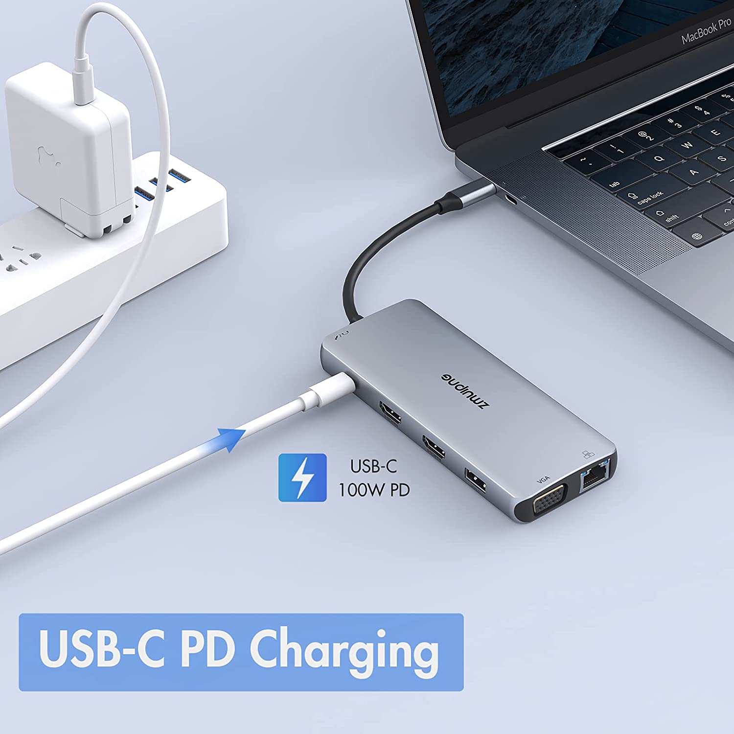• 【USB C Hub Multiport Adapter】: This USB C Dongle with 3 usb 2.0 ports, allows your conveniently connect keyboard,mouse,usb flash driver, usb c hard disks, transfer speeds up to 480Mbps; Also, it's supports up to 100W input & 87W(safe)output into your laptop.★★ Please Note: please ensure your laptop's USB C port supports power delivery protocol and please use at least 65W power adapter(not included) when charging with this usb c hub,using a lower wattage power charger may cause a system warning