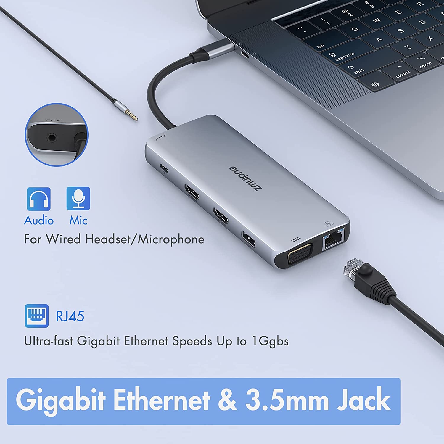 • 【Widely Compatibility】: This laptop docking station compatible witth laptops with a Full-featured USB Type-C port (support DisplayPort, charging, data transfer protocol), such as Laptops with thunderbolt 3/4 port:Dell XPS 13/15/17,HP Spectre x2/HP Spectre x360,Lenovo Yoga 720/910/920/930,Surface Pro 7/X/Go/Laptop 3, MaBook Pro Air 2020-2018 etc,★Notice:please check if this docking station is compatible for your device before purchase,the incompatible laptops can not use the HDMI/DP/VGA ports. ★Please note: Power cord is not included.