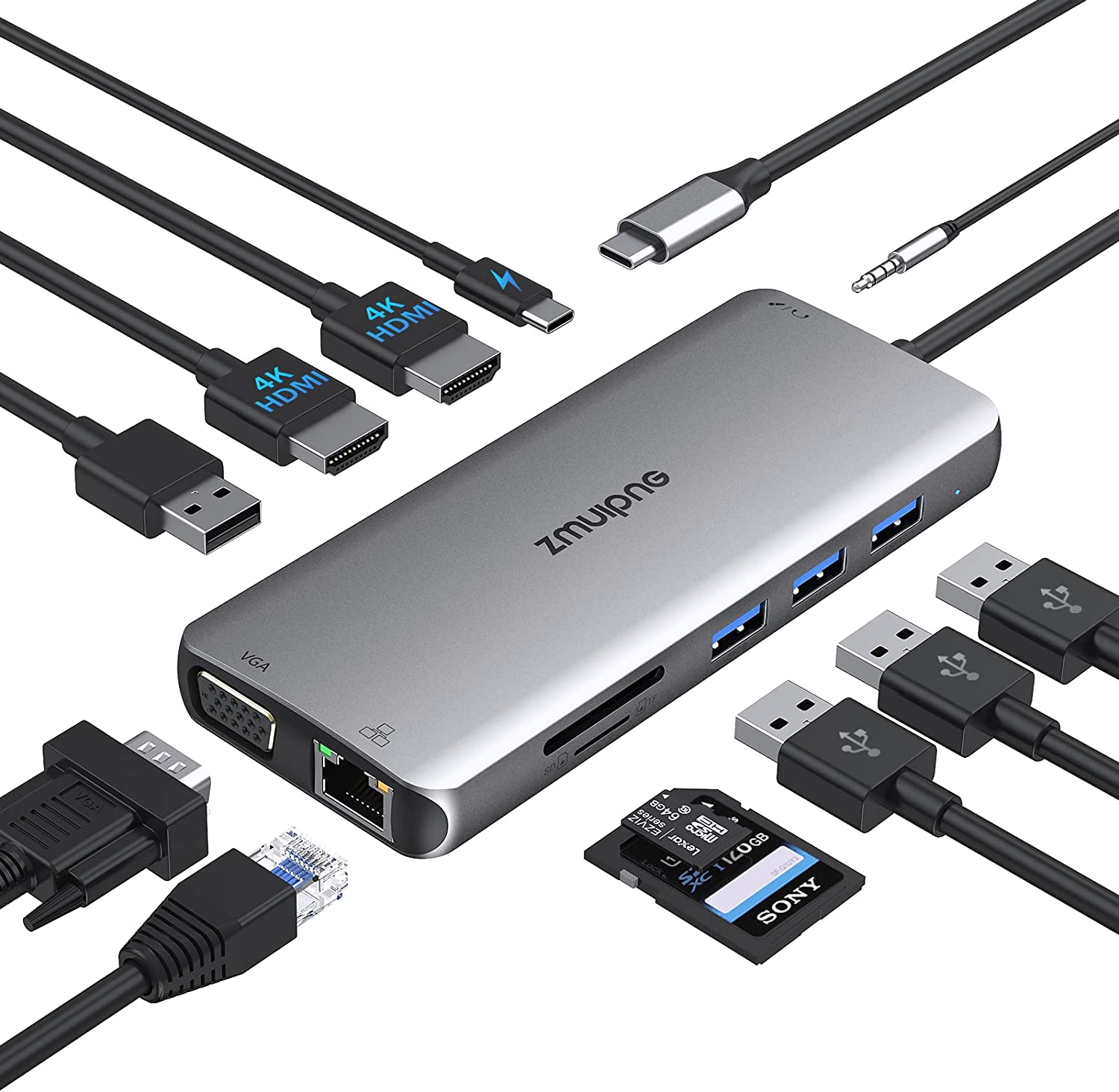 USB C Docking Station Dual Monitor for Dell HP, Quadruple Display USB C Hub Multiple Adapter to Dual 4K HDMI Displayport VGA,3 USB 2.0,100W PD, Thunderbolt Laptop USB C Dock for MacBook,Lenovo,Surface