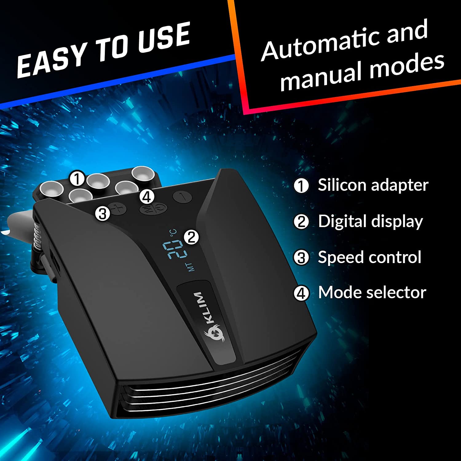 KLIM Tempest | Laptop Cooler with Vacuum Fan | New 2023 Version | Innovative Design for Rapid Cooling | Temperature Detection + Automatic/Manual Mode + 4000 RPM | Compatible with Laptop Cooling Pads