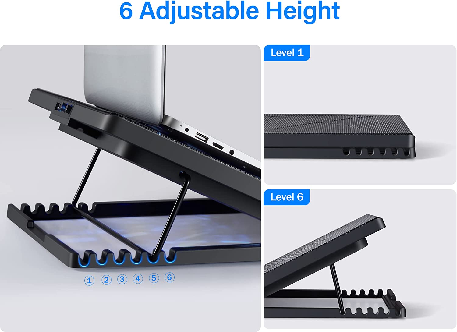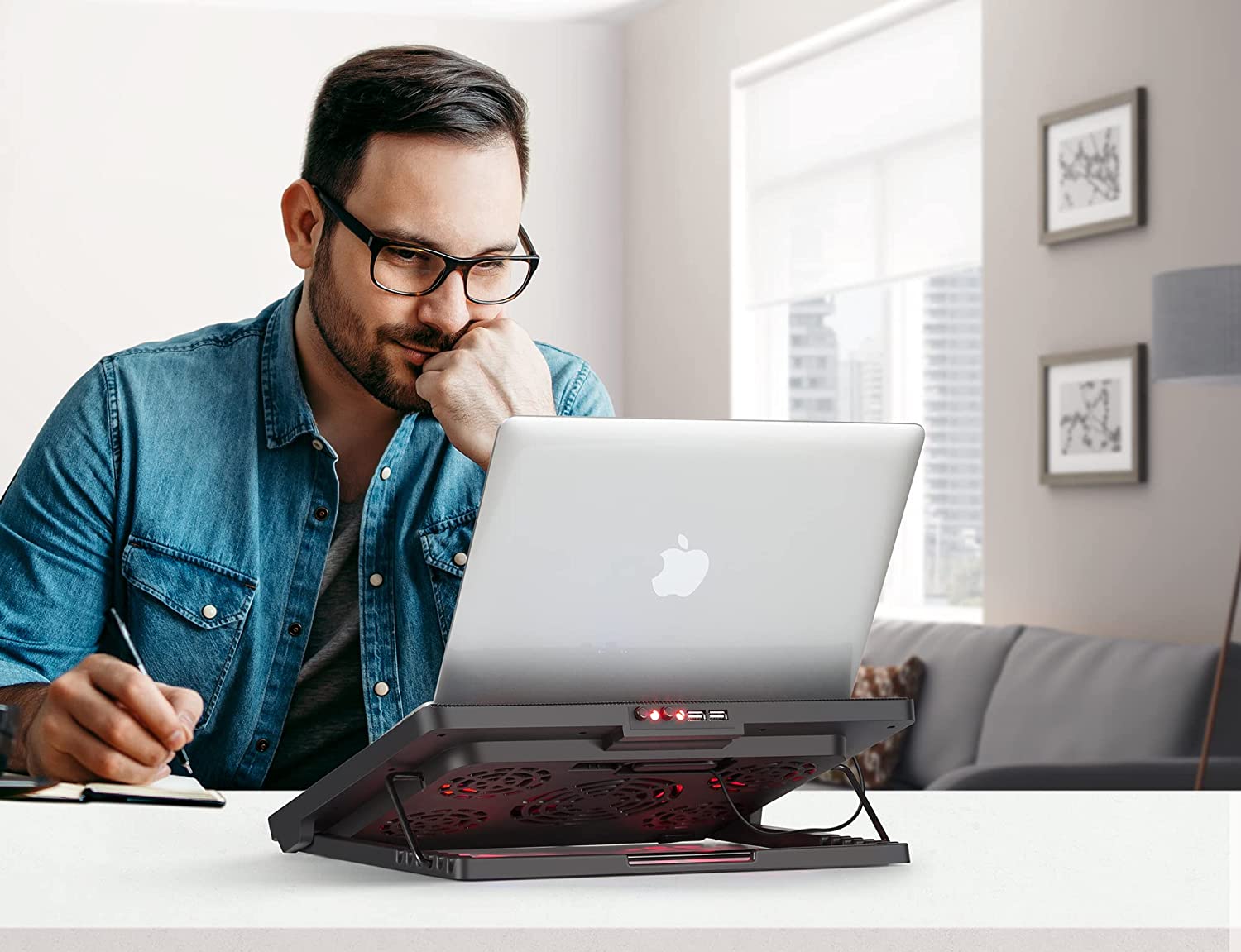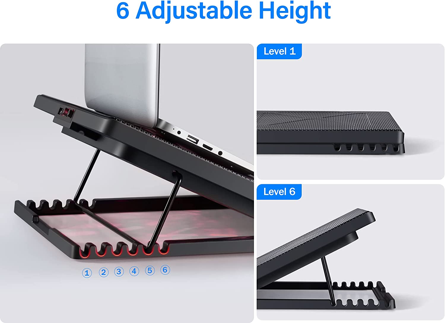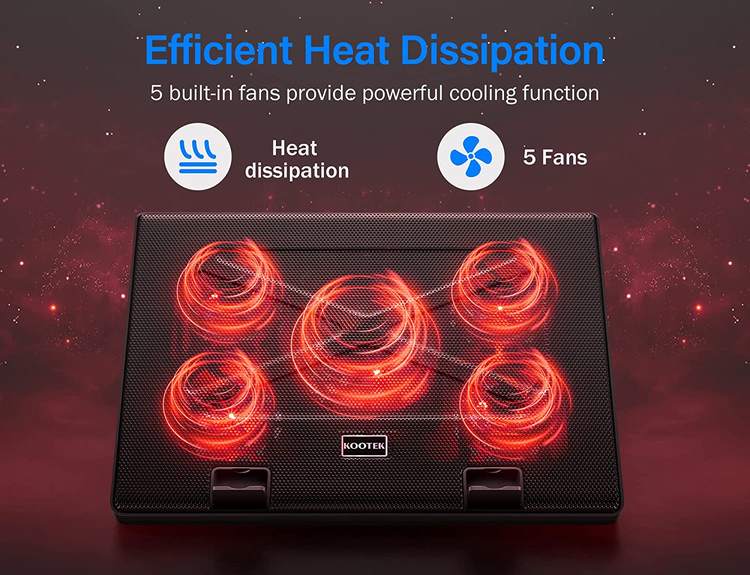 Kootek Laptop Cooling Pad 12"-17" Cooler Pad Chill Mat 5 Quiet Fans LED Lights and 2 USB 2.0 Ports Adjustable Mounts Laptop Stand Height Angle, Red