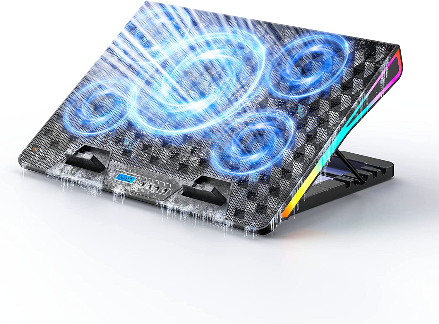Laptop Cooling Pad, Laptop Cooler Gaming Laptop Cooling Fan, Laptop Cooling Stand for 15.6-17.3 Inches with 4 Adjustable Heights, RGB Lights, 5 Quiet Fans & 2 USB Ports