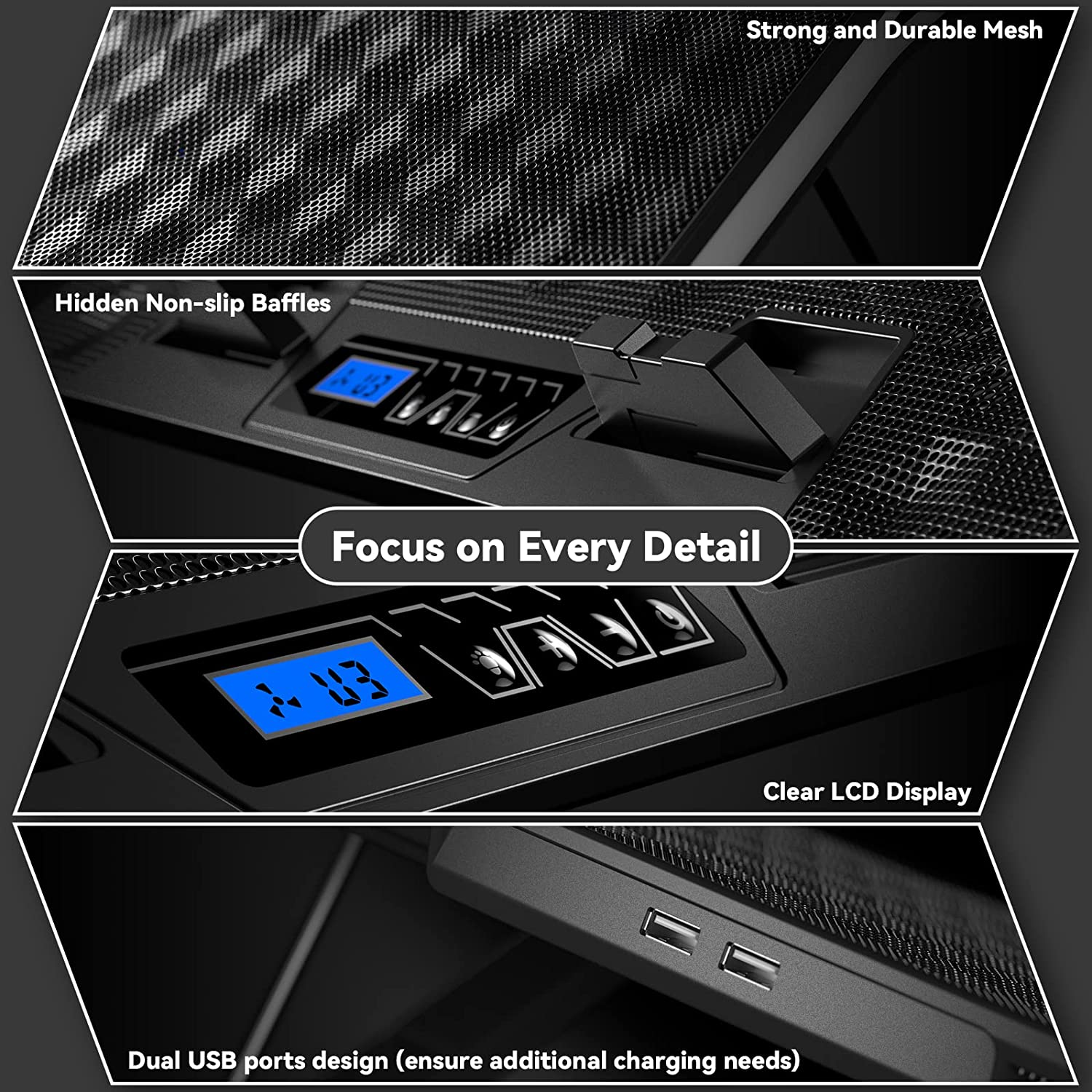 • 【Dual USB ports and 18-month warranty】The laptop fan design of dual USB ports considerately reserves additional charging or connection ports for you, so that you can still use other accessories such as a mouse and wired headset. ❤️In addition, there is an 18-month considerate after-sales warranty, quick response within 24 hours, and continues to increase your experience.