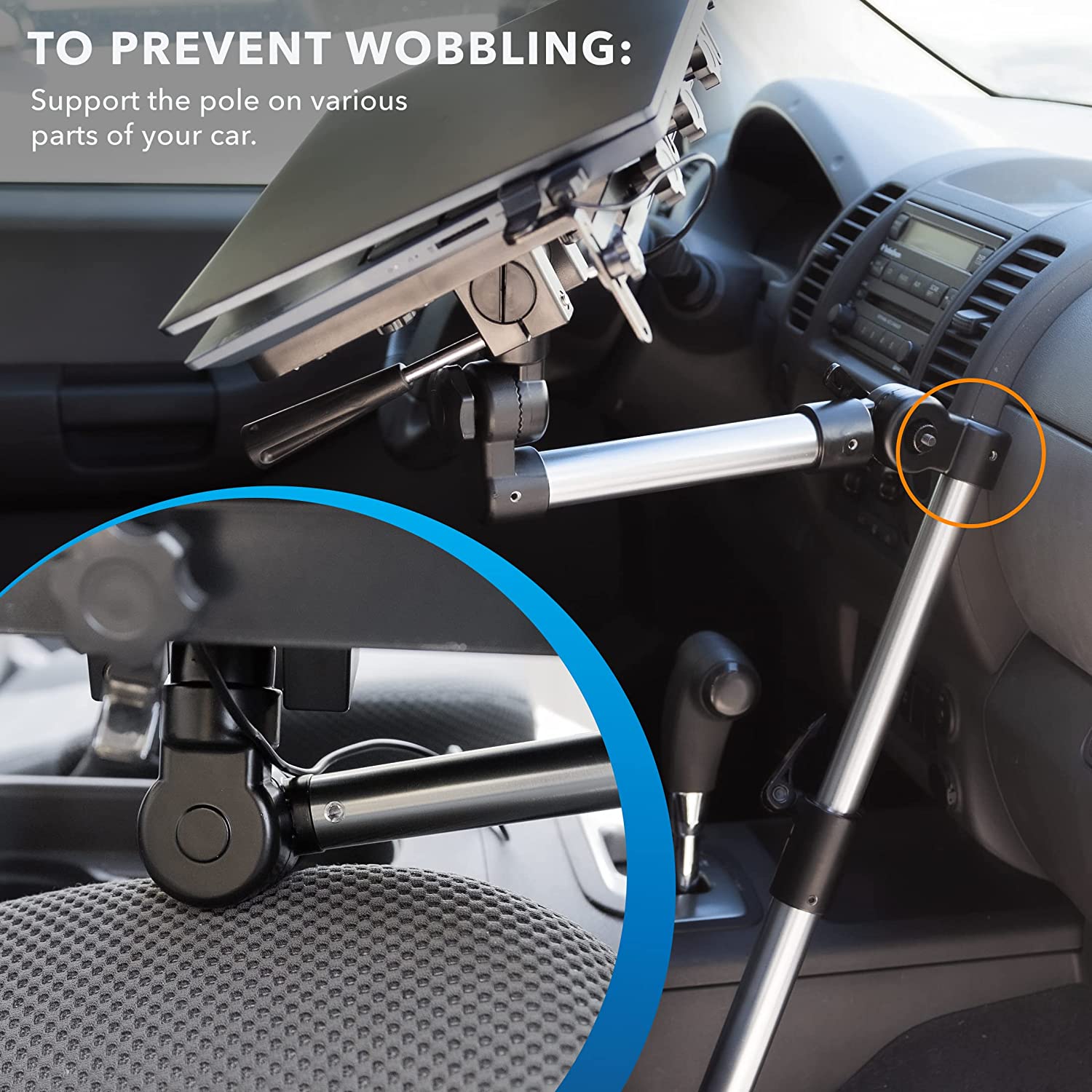• Full motion design allows perfect placement of the laptop to suit your use and vehicle requirements. Joints with locking teeth ensure the poles remain in position, even while driving.