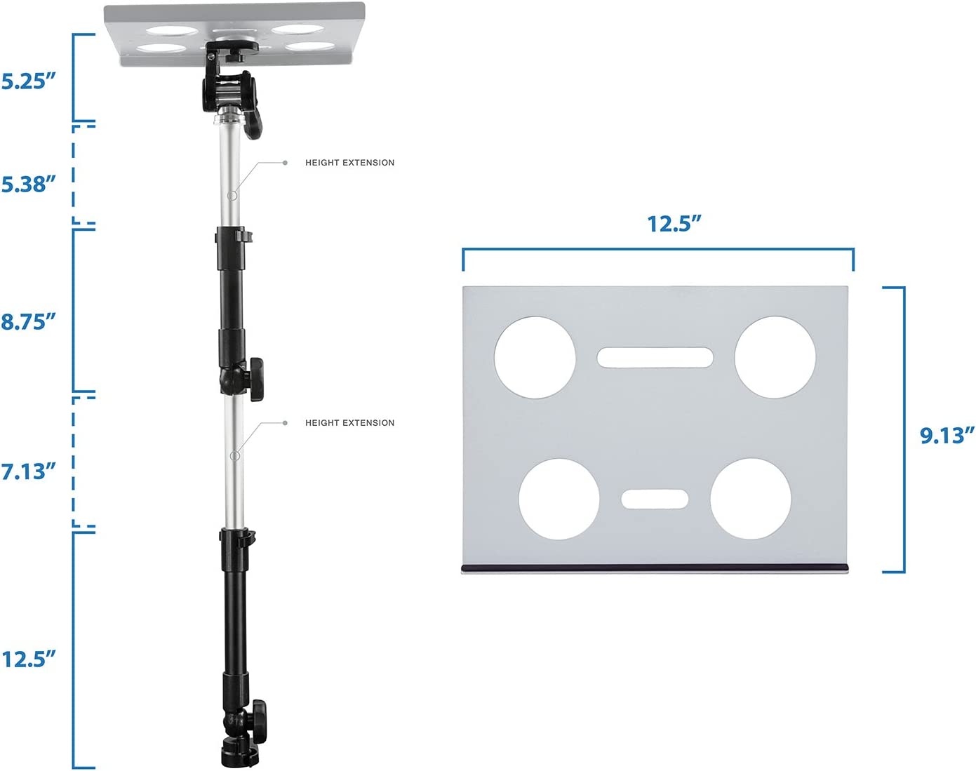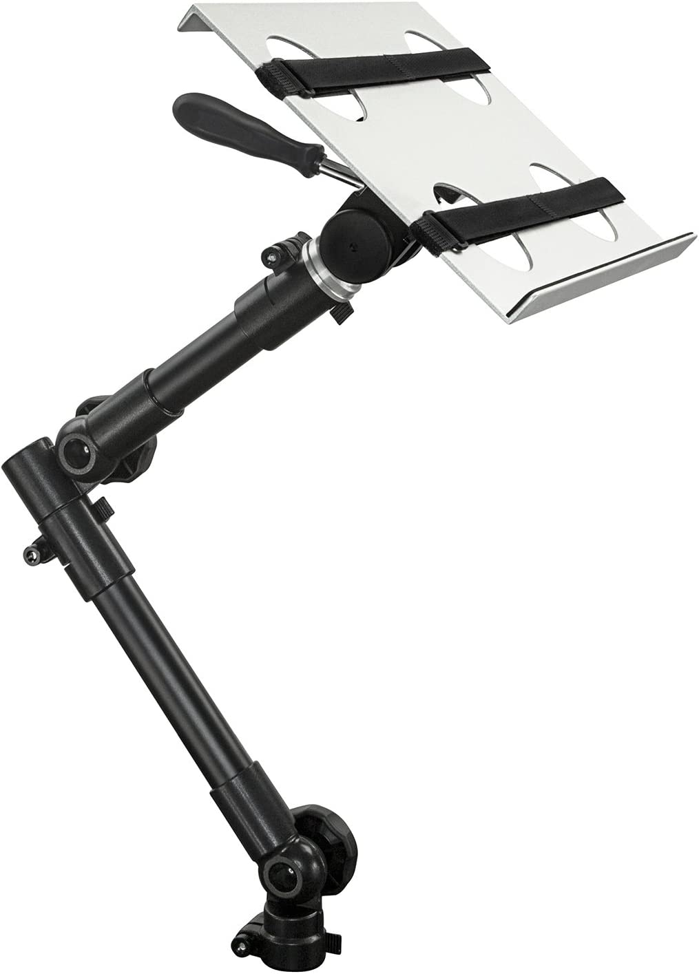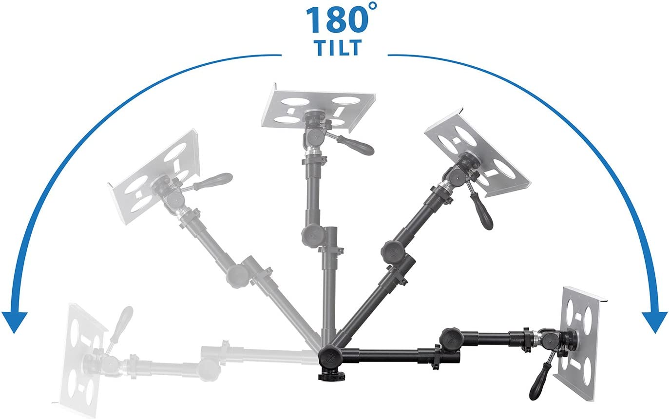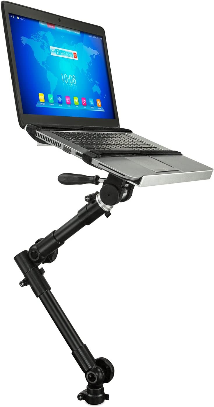 • FULL MOTION LAPTOP HOLDER: Find the perfect position for your laptop, tablet or notebook with this car laptop holder’s full range of motion. Three swivel joints and a height adjustable steel arm allow you to rotate your computer stand a full 360 degrees, tilt it 180 degrees and adjust the height a full 12.5 inches.
