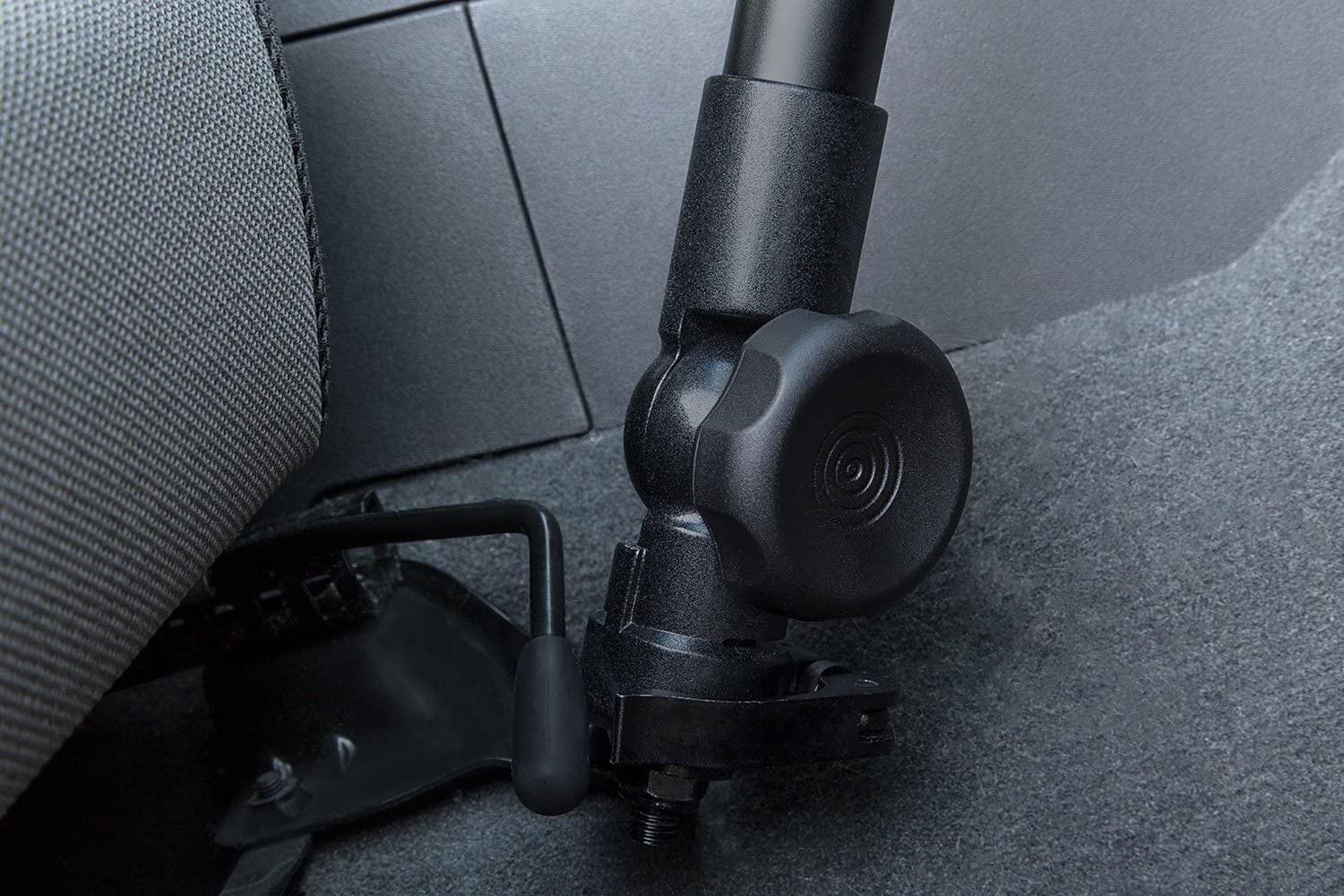 • EASY NO DRILL INSTALLATION: This laptop car mount features a no-drill mounting base that securely fastens to most vehicle makes and models. Simply anchor the base of this stand onto the passenger seat-bolt for a sturdy hold.