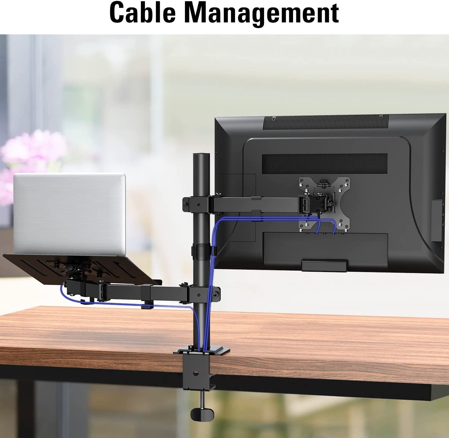 • CABLE MANAGEMENT –Monitor laptop mount stand comes with several clips for cable control and the holder for storing the tools supplied. It helps make everything look so much neater.