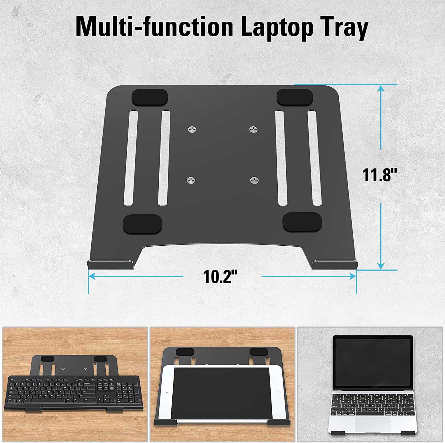 • ERGONOMIC FOR NEATER WORKSPACE – Make better use of the home & office space! The mount stand will take up few real space out the back of the desk and reserve more desktop surface. You will love it elevates laptop to the ideal height both ergonomically and to use it as an extension of main monitor screen.