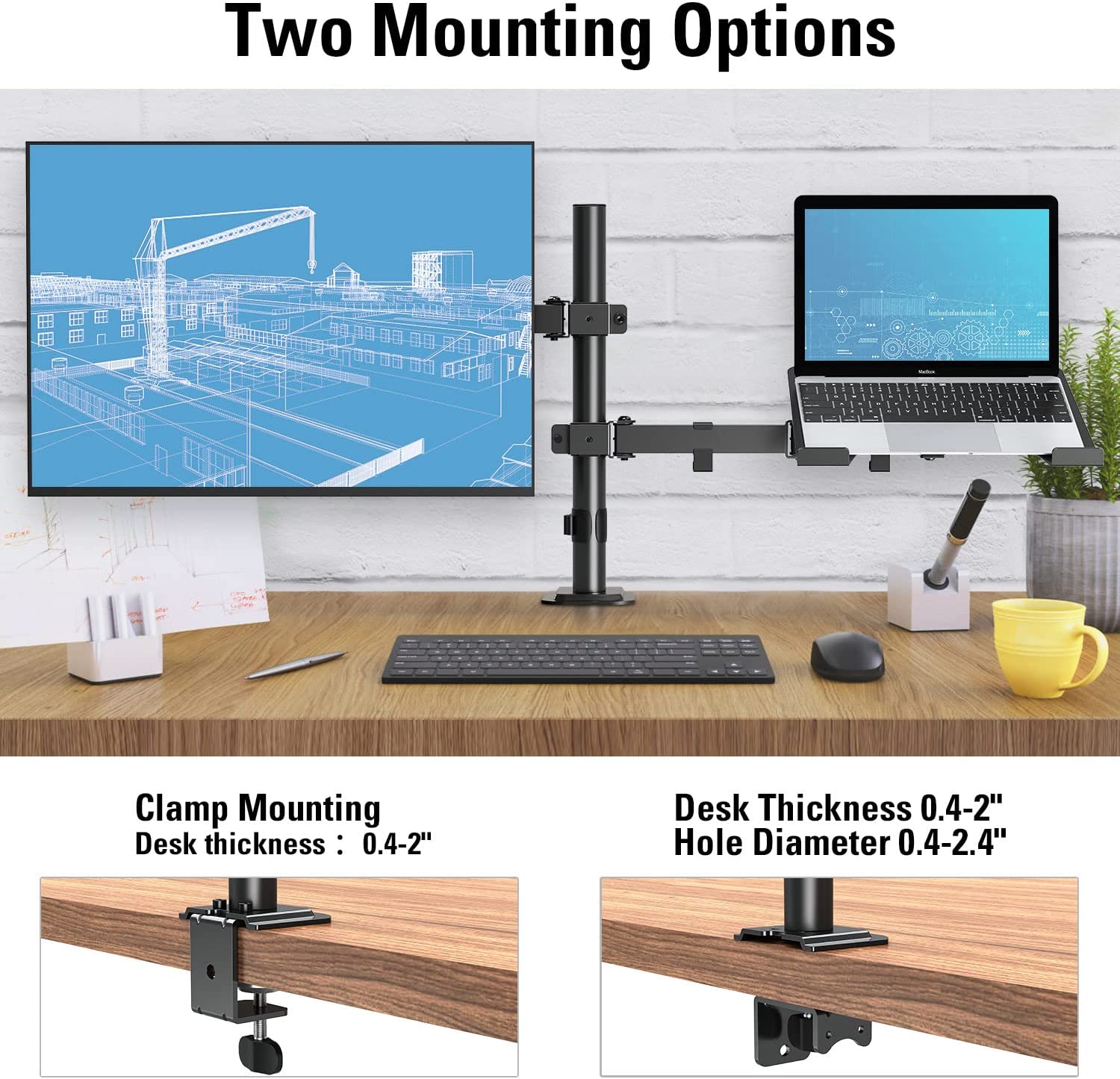 • HEAVY DUTY & EASY INSTALLATION –Mostly made of thick metal for the price, not easy to flop and droop. 2 choice of clamp and grommet mounting base and installation instruction is easy to follow. Note: For safety, if mounted on glass table, please install with a reinforcement plate (not included). The Bigger C-clamp is available on request which is suitable for the desk thickness over 3.15''.