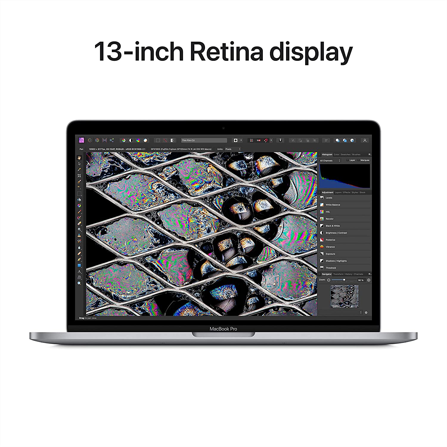 • SUSTAINED PERFORMANCE — Thanks to its active cooling system, the 13-inch MacBook Pro can sustain pro levels of performance, so you can run CPU- and GPU-intensive tasks for hours on end.