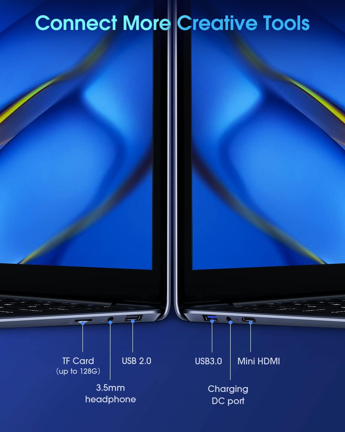• 🔌【Meet Various Daily Needs】This Windows 11 laptop is with USB 3.0*2, Microphone*1, Speaker*4, Camera, Micro-HDMI port*1, high-speed M.2*1, fast charging DC port*1, 3.5mm headphone jack*1, and TF card slot*1. Supports Bluetooth 4.2 and 2.4G/5G dual-band WIFI. Meet various using needs in your daily life.