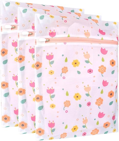3Pcs Durable Mesh Laundry Bag, Durable Laundry Bags with Premium Zipper (Flower)