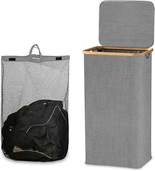 100L Large Laundry Basket with Lid, Laundry Basket with Lid and Removable Bag Tall Laundry Basket Freestanding Collapsible Laundry Hamper Collapsible Hampers for Bedroom and Bathroom (Grey)