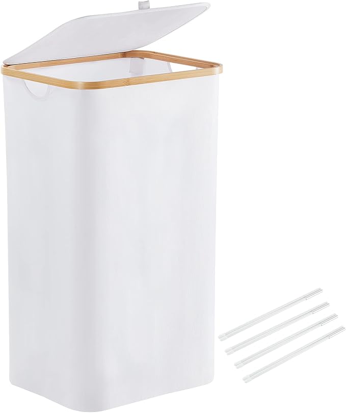 100L Large Laundry Hamper Basket with Lid by YOUDENOVA, Tall Clothes Hamper with Handle, Waterproof and Collapsible Storage Basket for Bedroom and Bathroom, White(16"L 13"W 28"H)