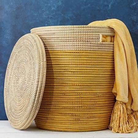 17" Small Woven Storage Basket (Yellow Beige Flat Lid)