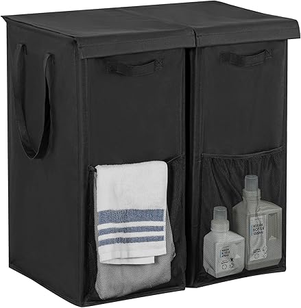 WOWLIVE 2-Pack Laundry Hamper with Lid, Double Tall Laundry Basket with Extended Handles (90L) Set of 2 Dirty Clothes Hamper Collapsible Laundry Organizer for Dorm Room (Black)