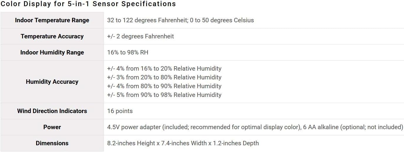 Pro Color Weather Station with PC Connect for WindowsInternet-Connected For Access To Your Data From Anywhere On A Smartphone, Computer Or TabletAccess your weather data through AcuRite PC Connect. The professional weather station includes a 5-in-1 sensor that measures your outdoor conditions. The 5-in-1 connects wirelessly to a color indoor display that, when connected to a PC, will collect your weather in a data file that you can view your history. You can also stream onto My AcuRite and Weather Underground. Overview: The AcuRite Professional Weather Station uses patented Self-Calibrating Technology to provide your personal forecast of 12 to 24 hour weather conditions. Self-Calibrating Forecasting is generated from weather data measured by a sensor in your yard - giving you the most accurate forecast available for your exact location. The display with PC Connect plugs into your PC to provide your weather information in a data (CSV) file, as a PC widget, or online. View your sensors from virtually anywhere on a smartphone, tablet or computer with the AcuRite app and myAcuRite website, or easily publish your weather reports on Weather Underground. The illuminated color LCD display includes indoor / outdoor temperature and humidity, wind speed / direction / chill, rain, barometric pressure, clock, calendar and more. Personalize the Weather Ticker to stream the information you want. Programmable alarms alert you when weather conditions change. Specification: General InformationManufacturer: Chaney Instrument CoManufacturer Part Number: 01036M Brand Name: AcuRiteProduct Line: ProProduct Model: 01036M Product Name: Pro 5-in-1 Color Weather Station with PC Connect, Wind and RainProduct Type: Weather ForecasterTechnical InformationProduct Features: BarometerProduct Features: CalendarProduct Features: Dew PointProduct Features: HygrometerProduct Features: Rain GaugeProduct Features: Self-Calibrating ForecastingProduct Features: AlarmProduct Features: AnemometerProduct Features: ClockProduct Features: Data LoggerProduct Features: Heat indexProduct Features: ThermometerProduct Features: Wi