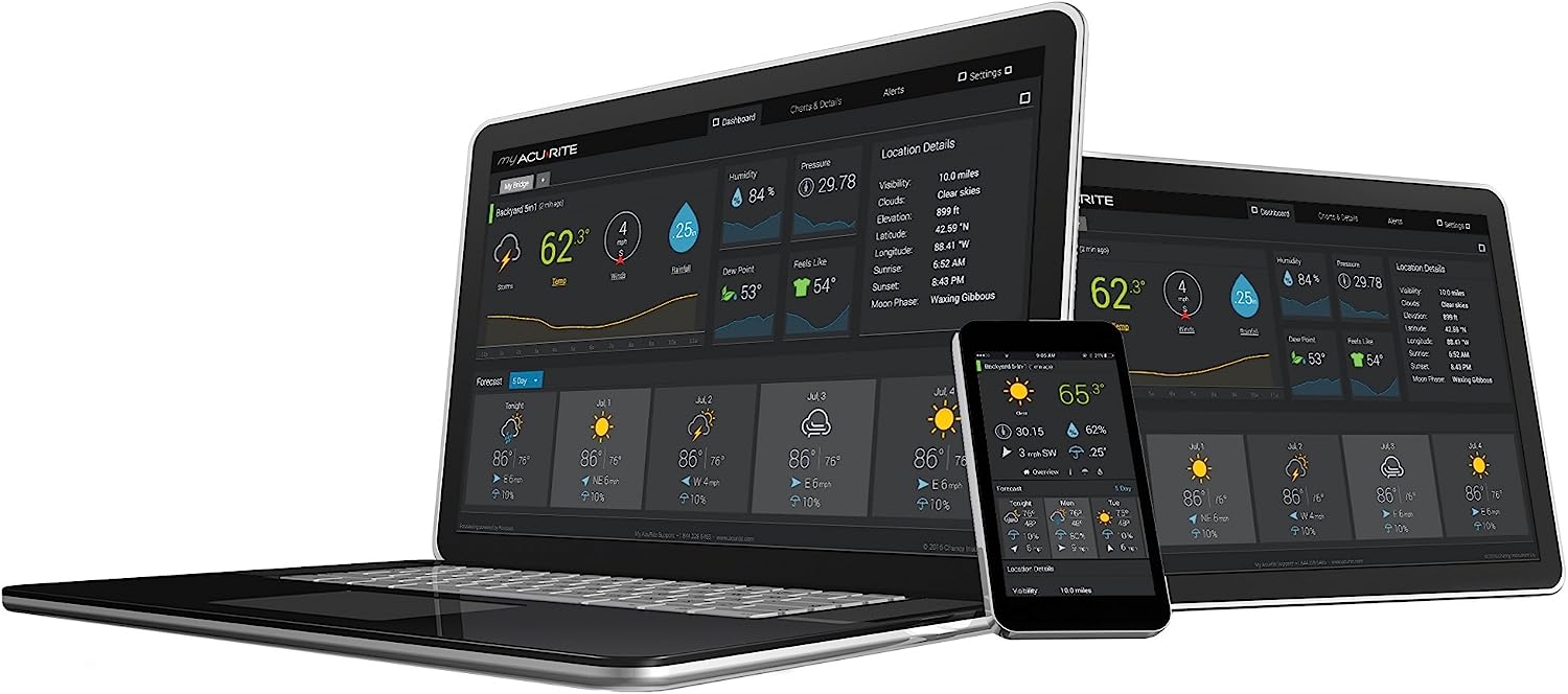 • PC Connect feature enables you to connect the display to a Windows computer via USB, allowing you to remotely view your weather through the internet on a smartphone, tablet, or computer (using the complimentary software; the My AcuRite website or app for iOS and Android devices; or Weather Underground)