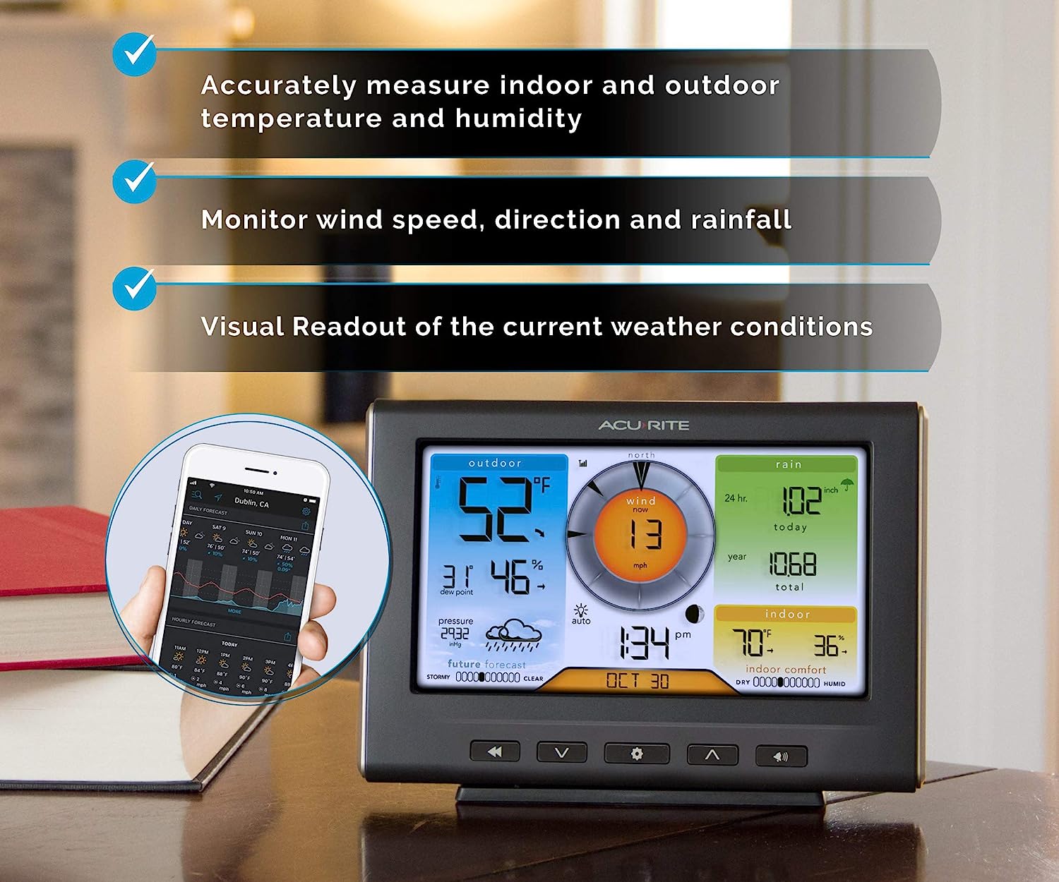 AcuRite Iris (5-in-1) Home Weather Station with Wi-Fi Connection to Weather Underground with Temperature, Humidity, Wind Speed/Direction, and Rainfall (01540M) , Black