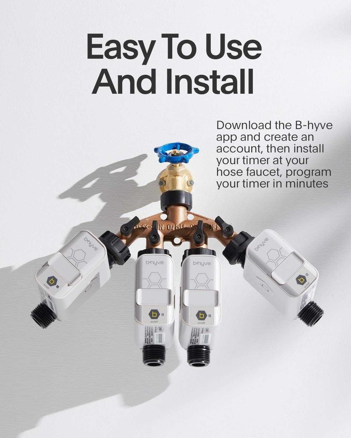 • EASY TO INSTALL AND USE: Setup is very straightforward and simple just download the B-hyve app and create an account, then install your timer at your hose faucet, then program your timer in minutes