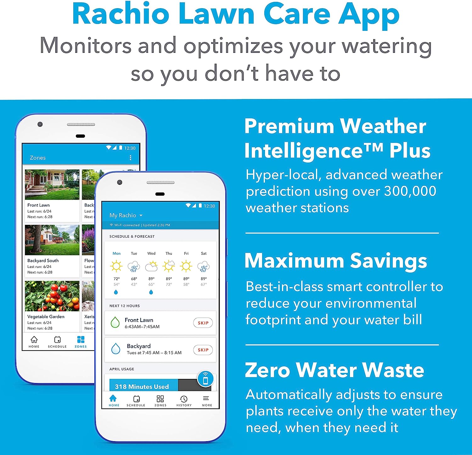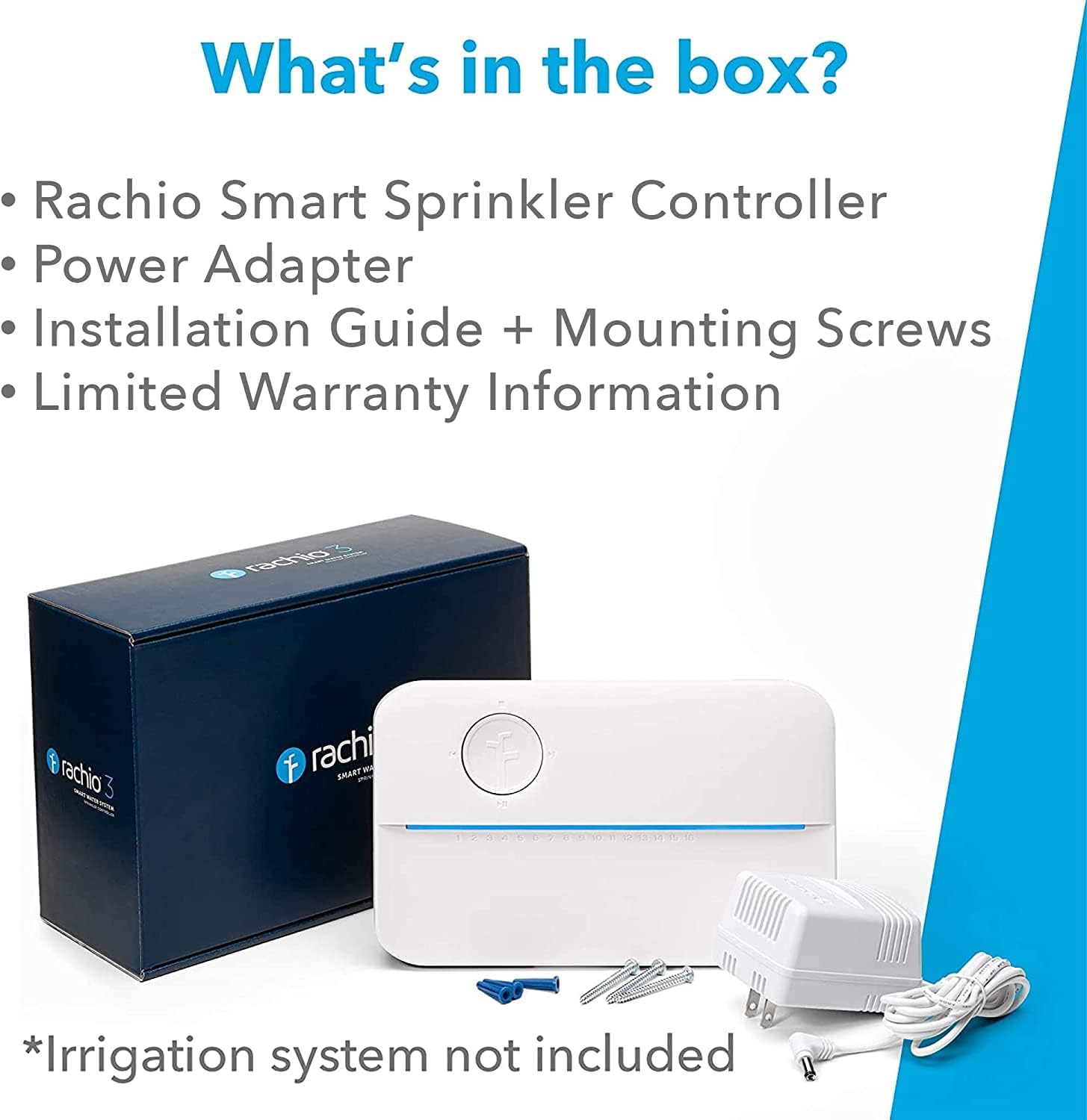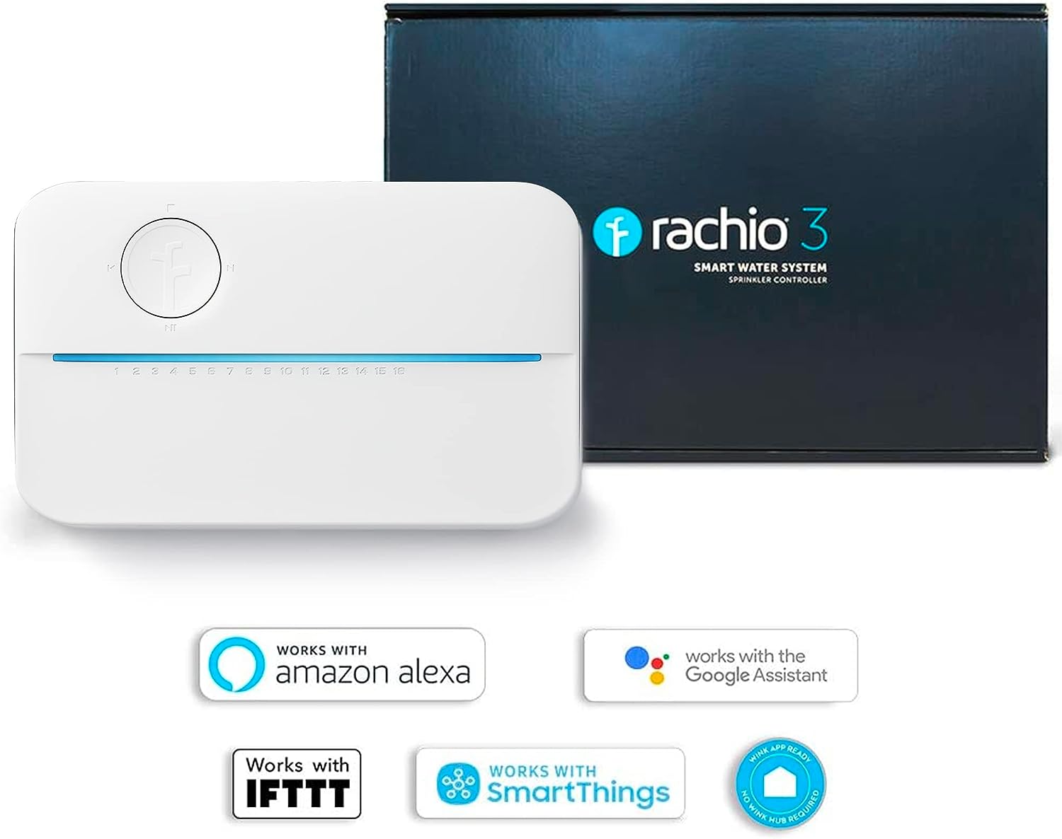 The Rachio 3 Smart Sprinkler Controller raises the smart watering bar with foolproof installation, dual-band Wi-Fi and an expressive light bar. Rachio 3 is the only controller equipped with hyperlocal Weather Intelligence Plus. The Rachio 3 Smart Sprinkler Controller automatically creates watering schedules that lower your water bill and ensure a beautiful yard, while the mobile app lets you manage your sprinkler system from anywhere. Rachio partners with the top smart-home platforms including Amazon Alexa, the Google Assistant, Nest, IFTTT – making it the most connected controller on the market. App Compatibility - Android 4.4+; subject to change. Mobile app is required to connect the controller to Wi-Fi. Systems that source water from a well will likely need a pump to add pressure for sprinklers.