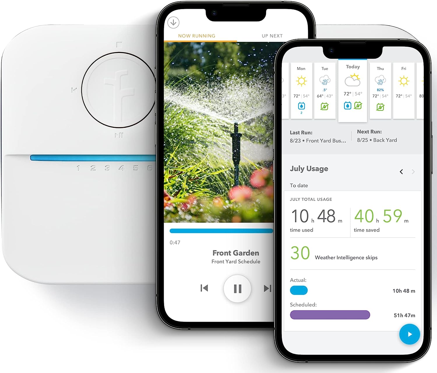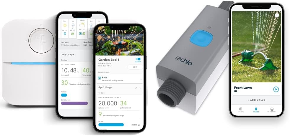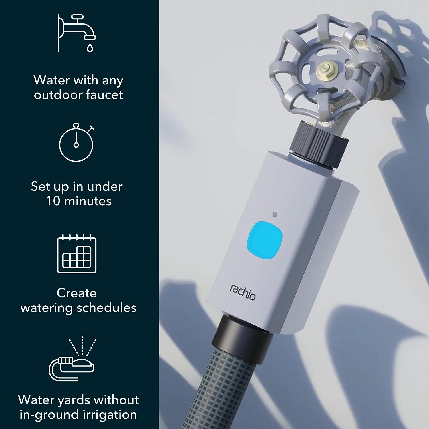 The Rachio 3 Smart Sprinkler Controller raises the smart watering bar with foolproof installation, dual-band Wi-Fi and an expressive light bar. Rachio 3 is the only controller equipped with hyperlocal Weather Intelligence Plus. The Rachio 3 Smart Sprinkler Controller automatically creates watering schedules that lower your water bill and ensure a beautiful yard, while the mobile app lets you manage your sprinkler system from anywhere. Rachio partners with the top smart-home platforms including Amazon Alexa, the Google Assistant, Nest, IFTTT – making it the most connected controller on the market. App Compatibility - Android 4.4+; subject to change. Mobile app is required to connect the controller to Wi-Fi. Systems that source water from a well will likely need a pump to add pressure for sprinklers.