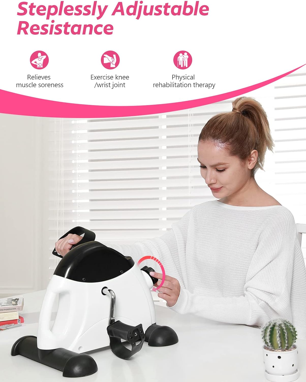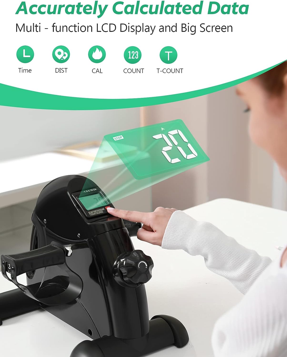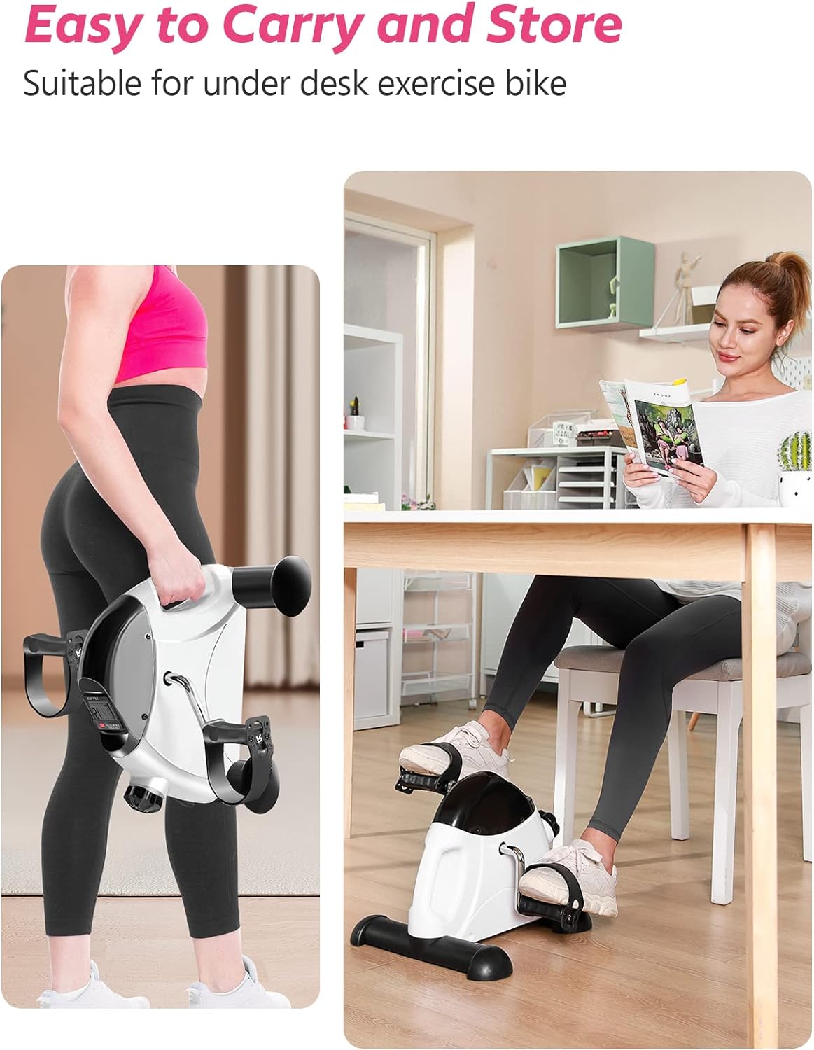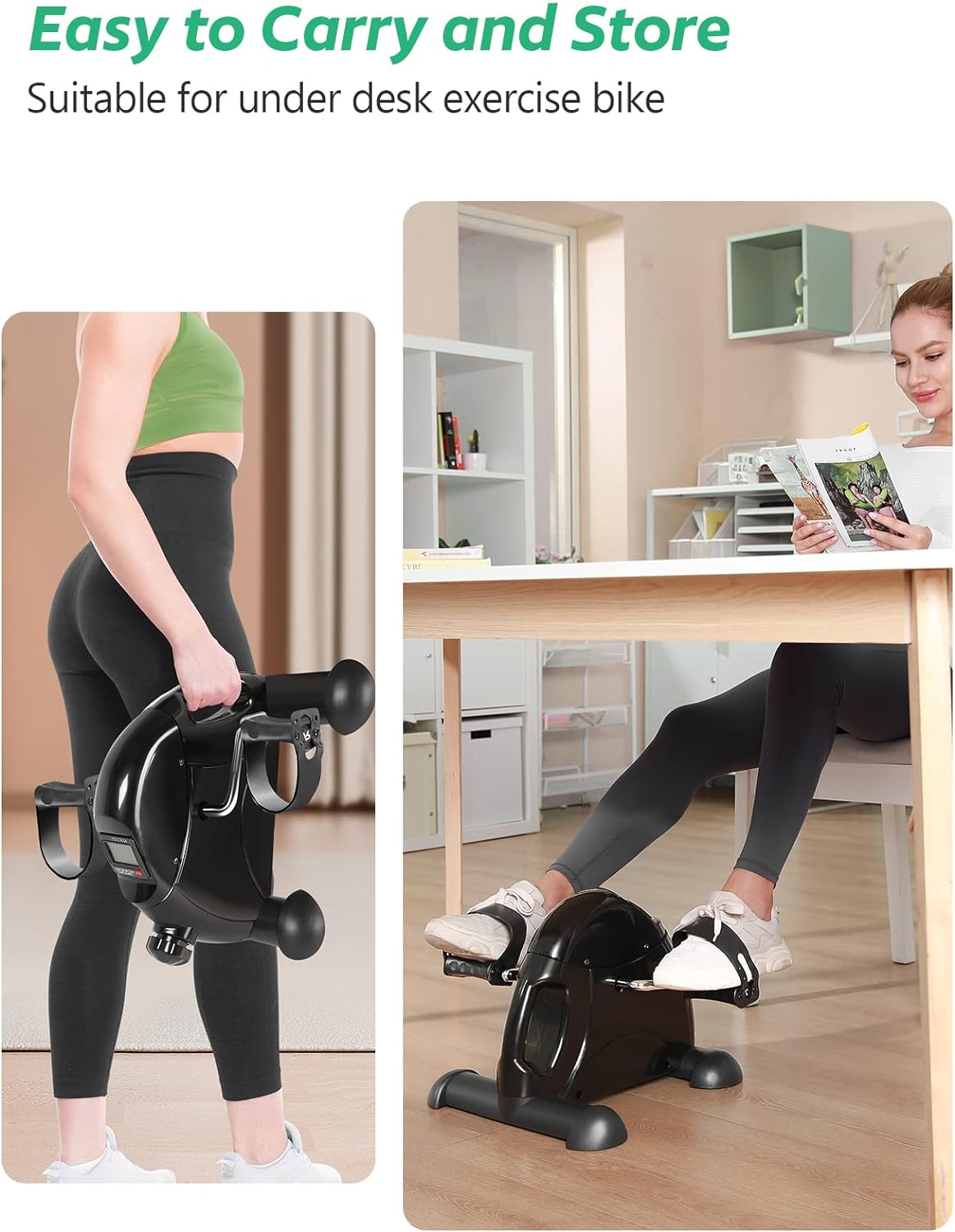 FEIERDUN Mini Exercise Bike, Under Desk Bike Pedal Exerciser Portable Foot Cycle Arm & Leg Peddler Machine with LCD Screen Displays