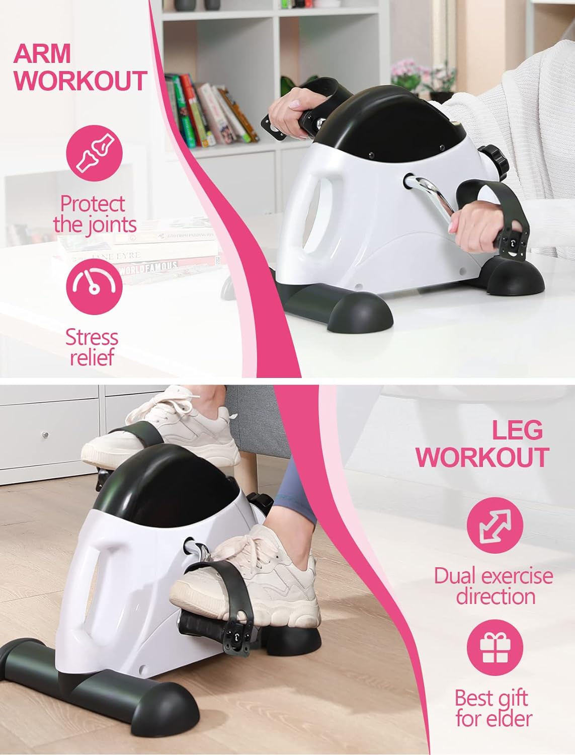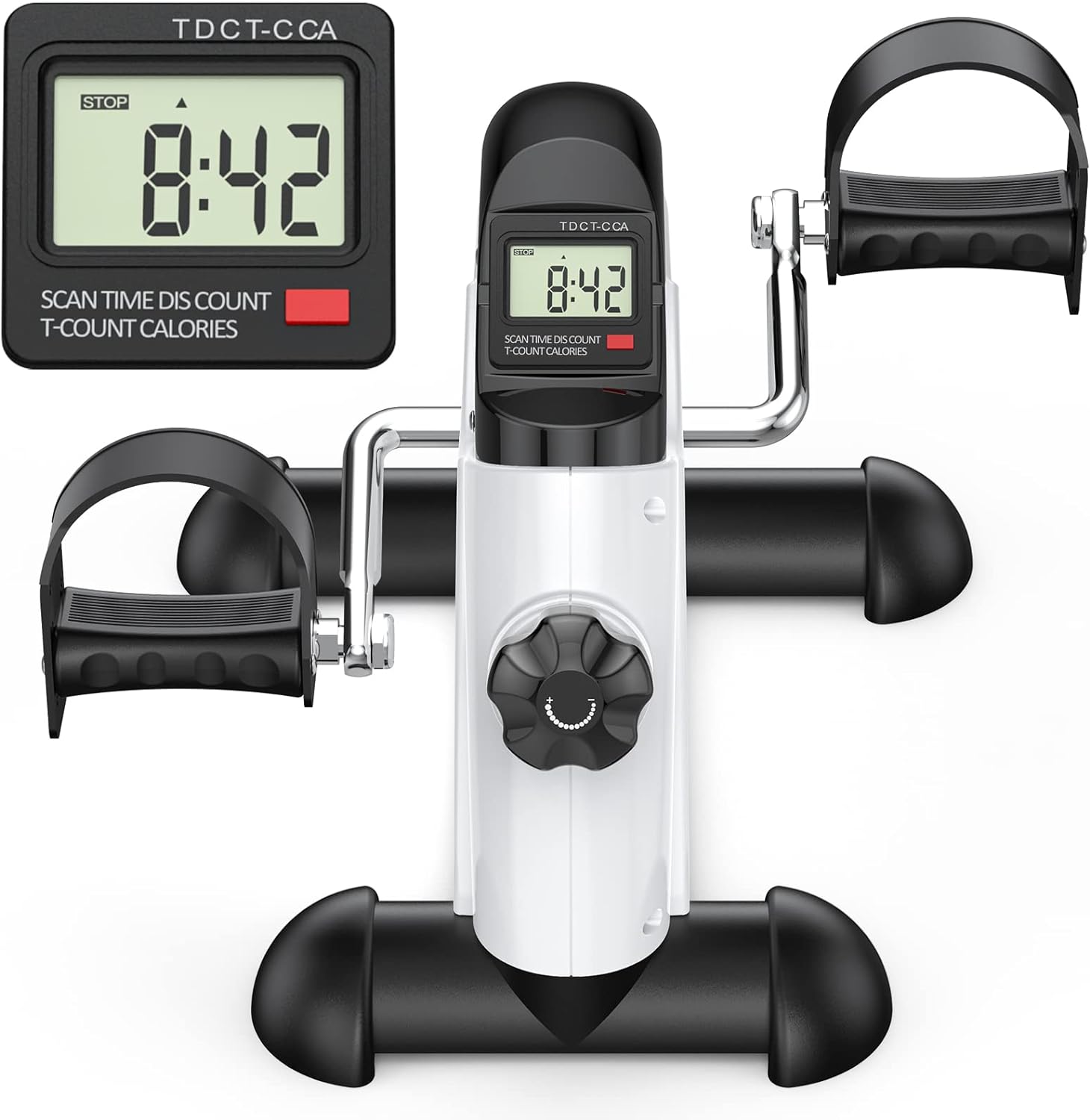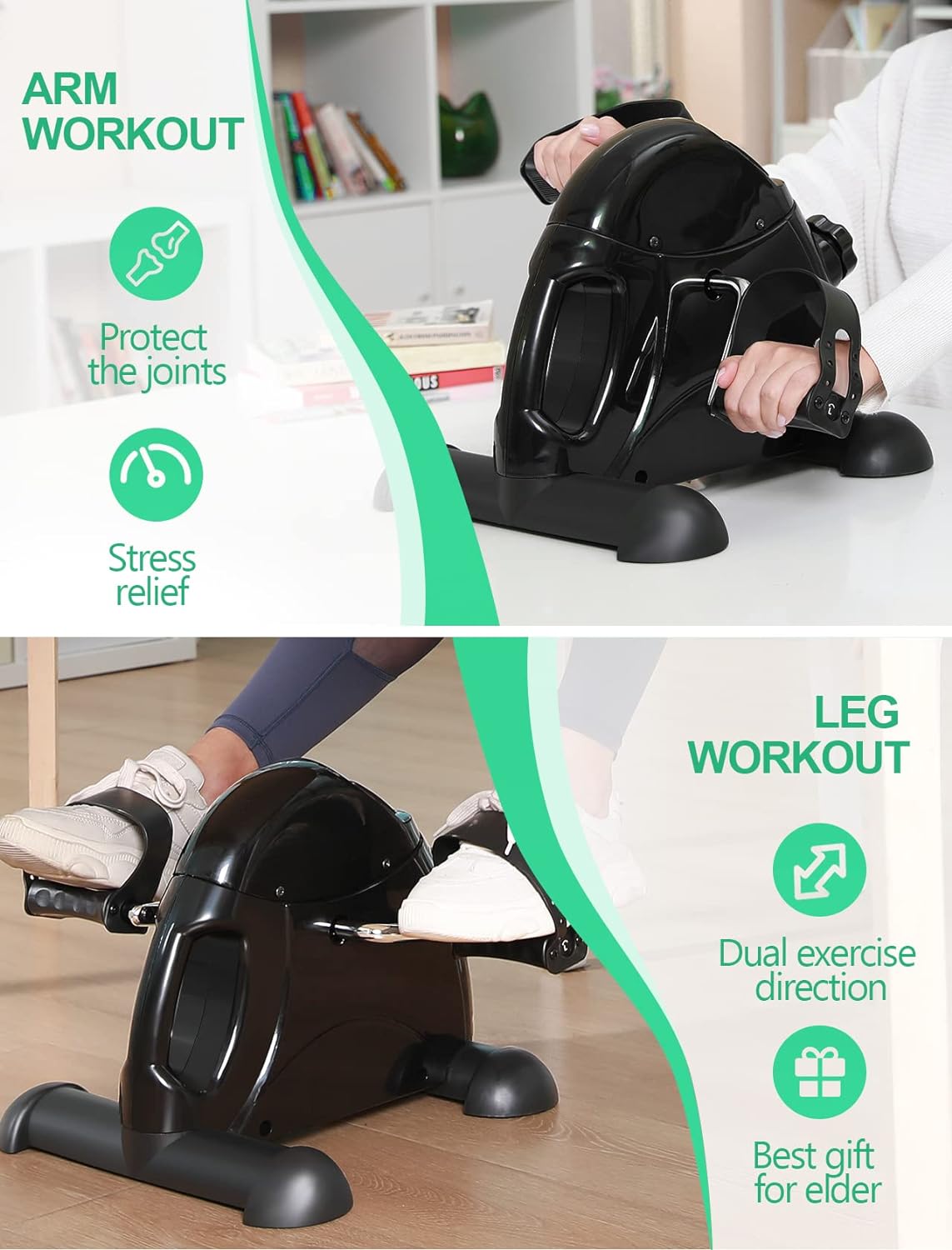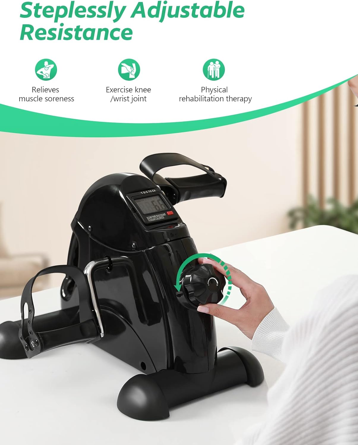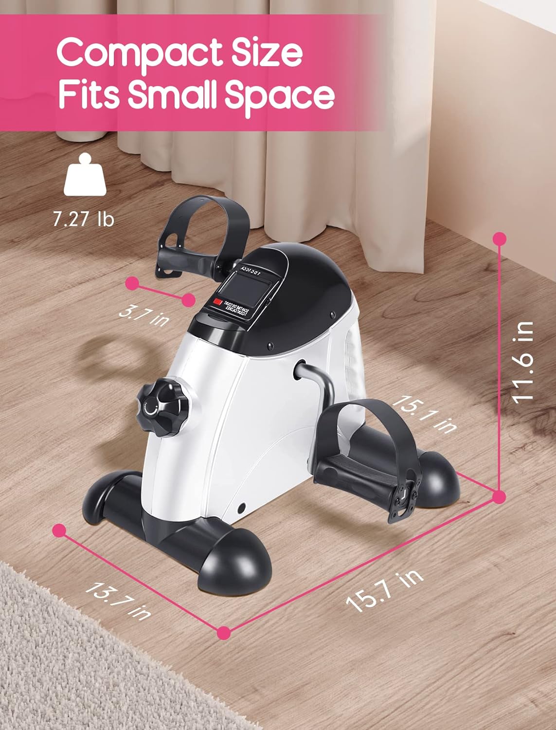 FEIERDUN Mini Exercise Bike, Under Desk Bike Pedal Exerciser Portable Foot Cycle Arm & Leg Peddler Machine with LCD Screen Displays