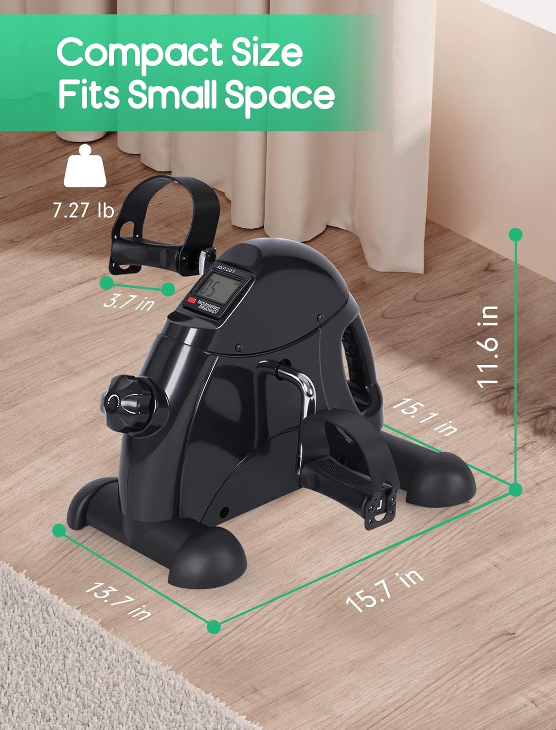 • 【PORTABLE AND EASY TO STORE】Lightweight design, portable and easy to assemble. The portable handle function makes the fitness exercise bike always ready. Product size: 13.7" x 15.7" x 11.6". You can put it under the desk, beside the sofa or in the locker. Small size and space saving - can be used at home or office.