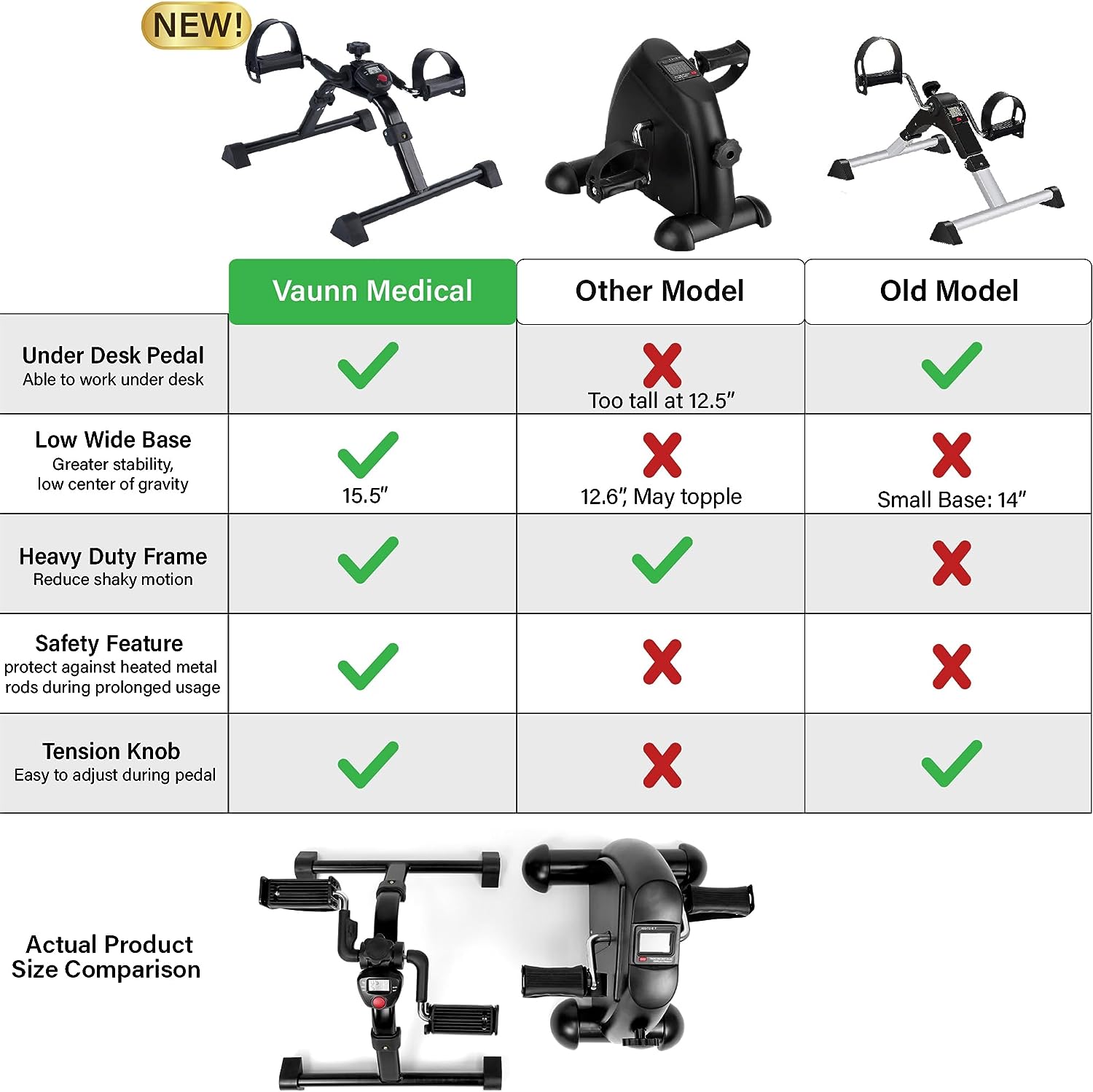 Vaunn Medical Under Desk Bike Pedal Exerciser with Electronic Display for Legs and Arms Workout (Fully Assembled Folding Exercise Pedaler, no Tools Required)