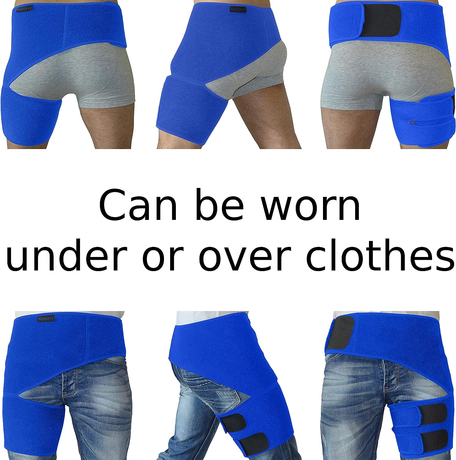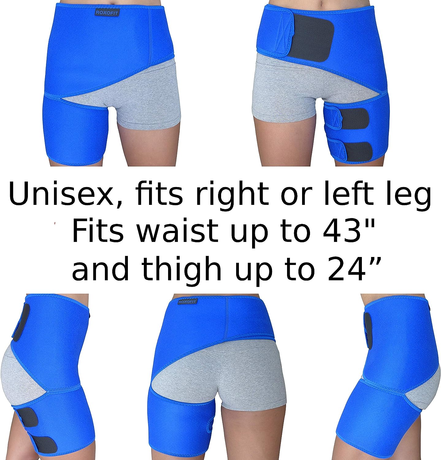 ROXOFIT® Hip Brace for Sciatica Pain Relief: Ease Pain from Sciatic Nerve, Pulled Thigh, Hip Fleхоr Strain, Groin Injury, Hamstring Pull, Sacroiliac Joint - Compression Upper Leg Muscle Support Stabilizer Ortho Wrap - SI Belt Device for Men, Women (Black)