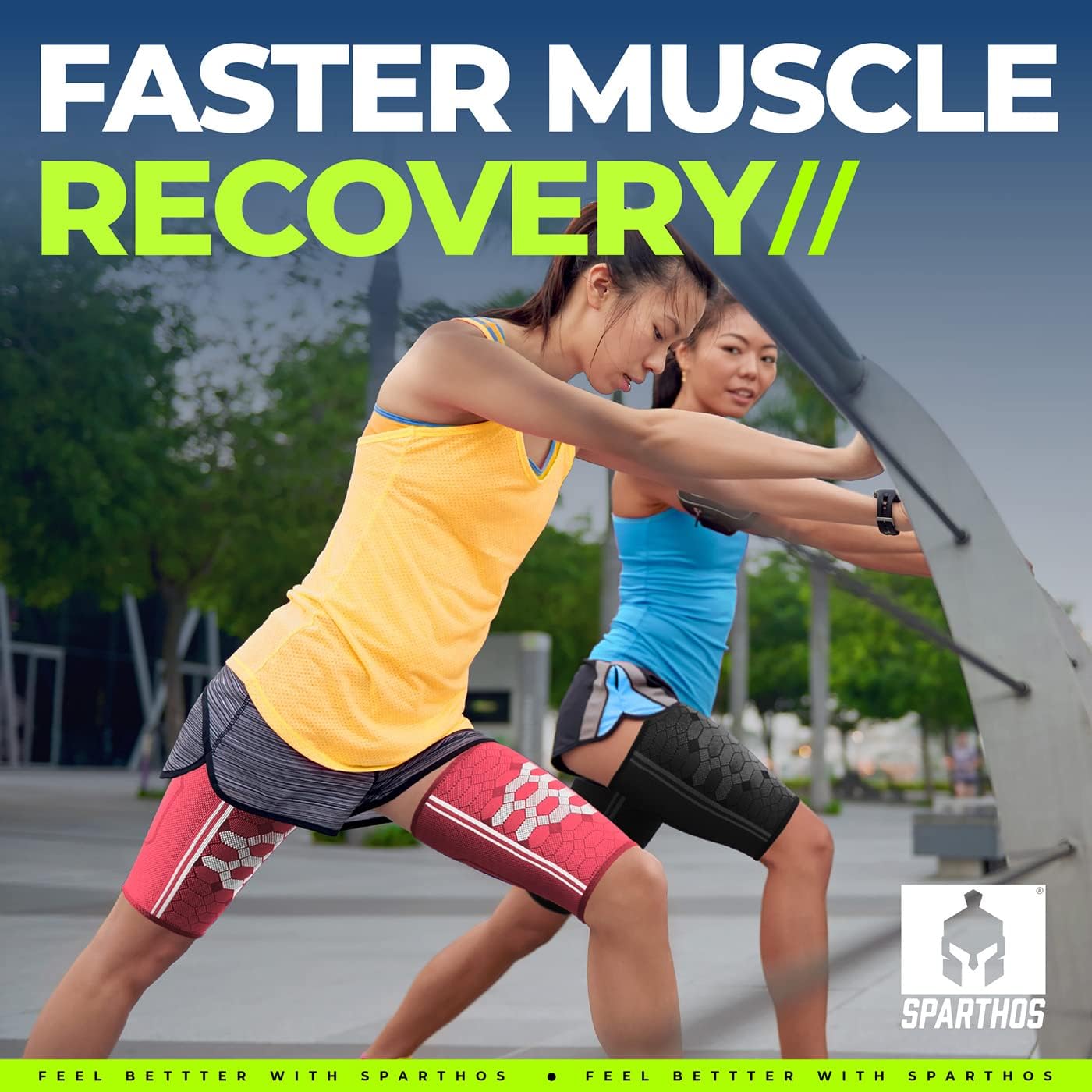 Sparthos Thigh Compression Sleeves (Pair) – Quad and Hamstring Support – Upper Leg Sleeves for Men and Women – Made from Innovative Breathable Elastic Blend – Anti Slip