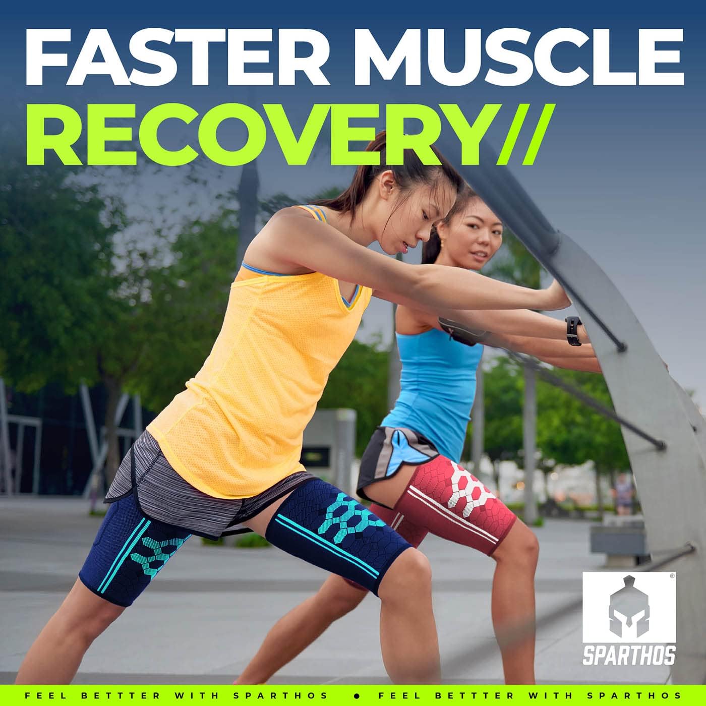 • ✅ INCREASE YOUR PERFORMANCE - Created for extra stability and support, Sparthos Thigh Sleeve will compress the thigh stimulating blood flow and delivering more oxygen. These are the key factors of fast recovery. Tear through your workout without slowing down.