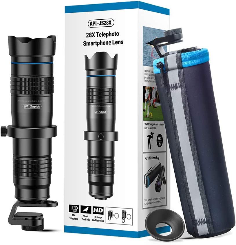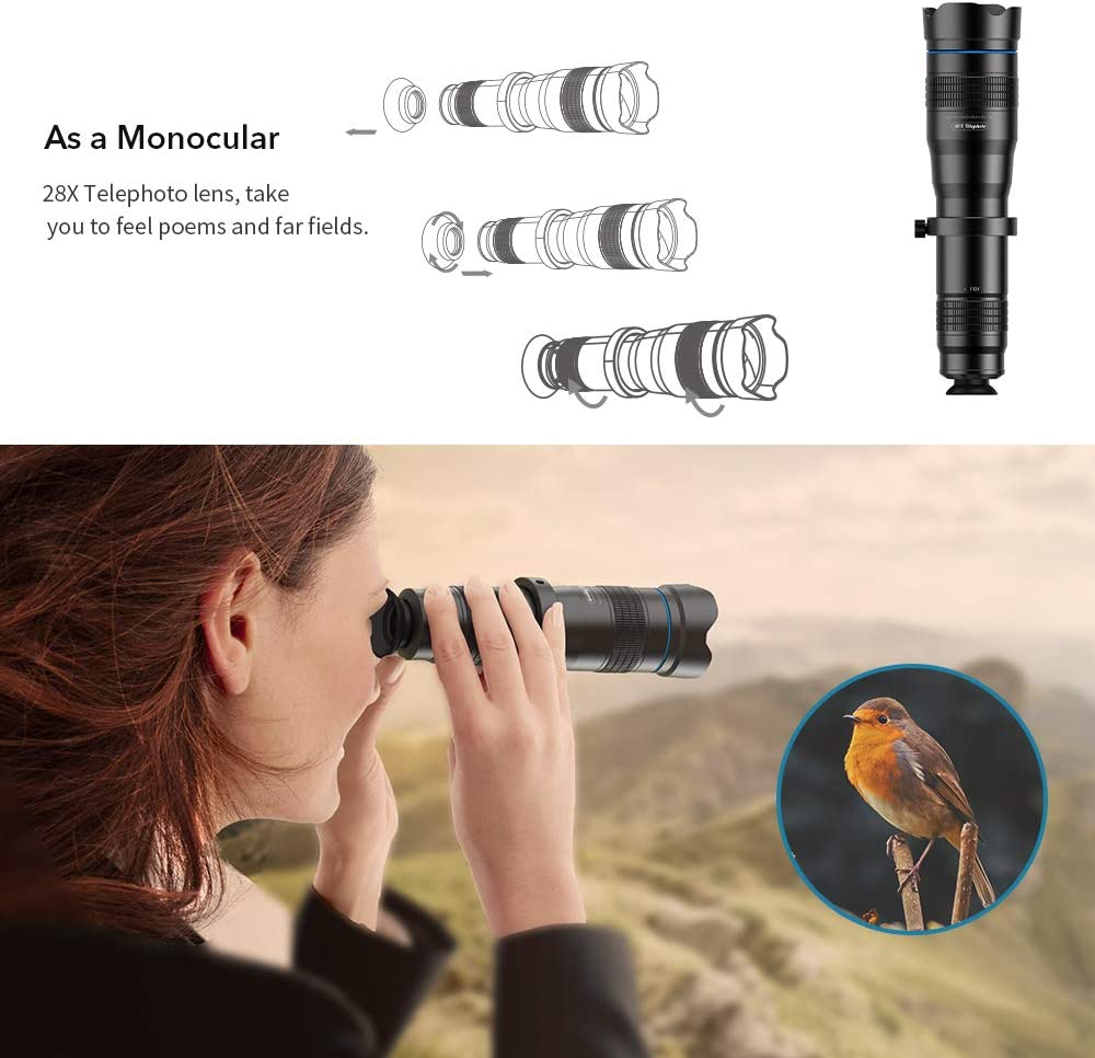 APEXEL High Power 28x HD Phone Telephoto Lens with Remote Shutter Works with iPhone X/XR Samsung Pixel Android Any Smartphones