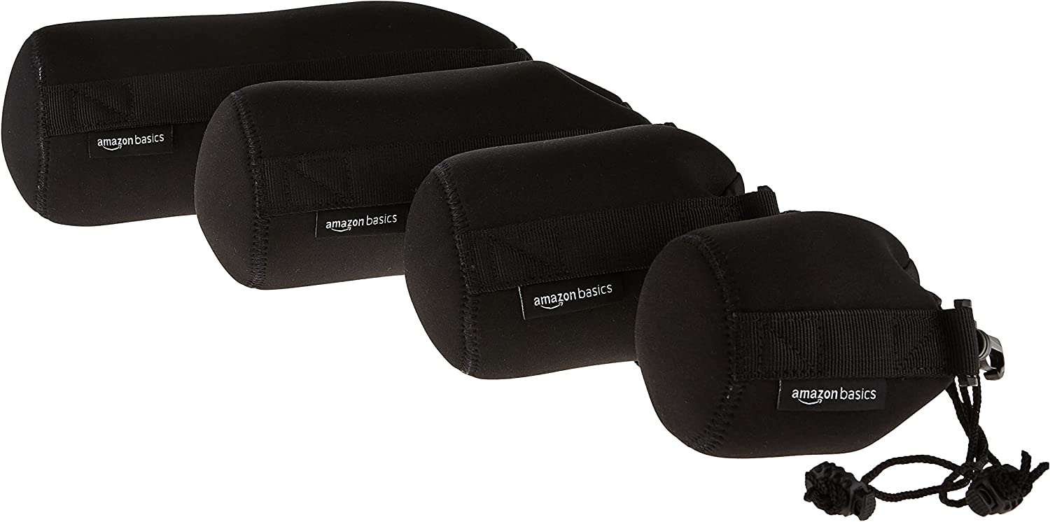 Amazon Basics Water Resistant Neoprene Camera Lens Accessories Protective Case - Set of 4, Black