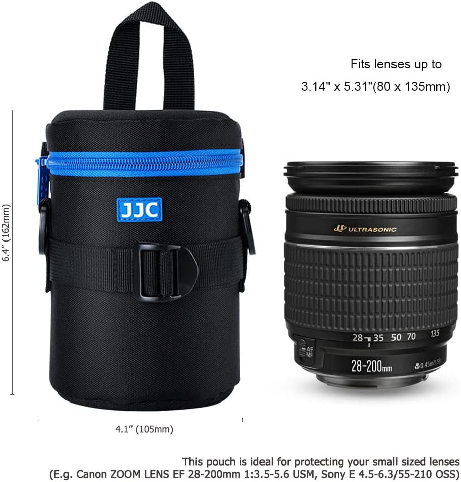• Interior Size: 110 x 225mm(4.33" x 8.85")/ Exterior Size: 135 x 250mm(5.31" x 9.84"), Compatible with Lenses with diameter and height below 110 x 225mm(4.33" x 8.85") (Note: Since the lens pouch is soft and flexible, the size of lenses that can be held may be slightly larger than the interior size of the pouch)