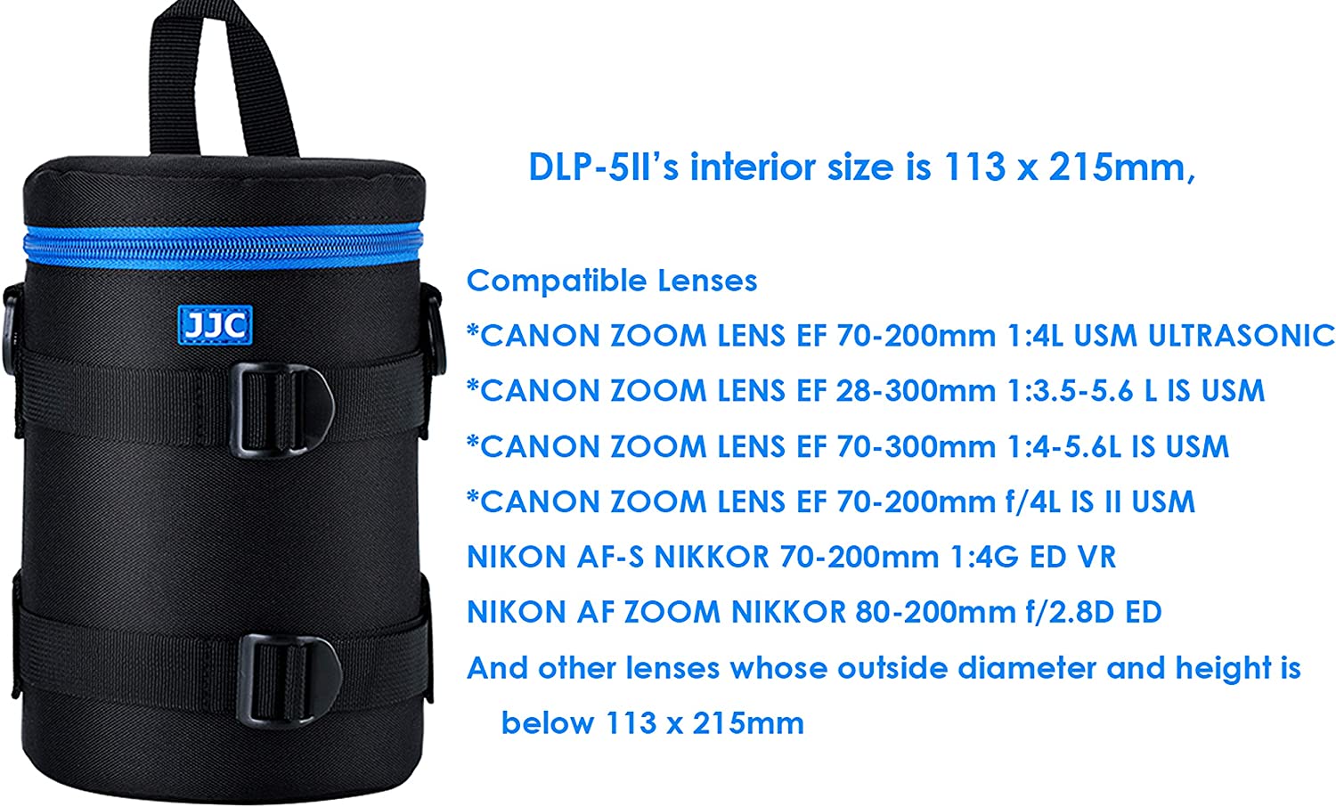 • DLP-7II Inner size: 124 x 310mm; fits TAMRON SP 150-600mm F/5-6.3 Di VC USD, Sigma 150-500mm F5-6.3 DG OS HSM and other lenses whose outside diameter and height is below 124x 310mm