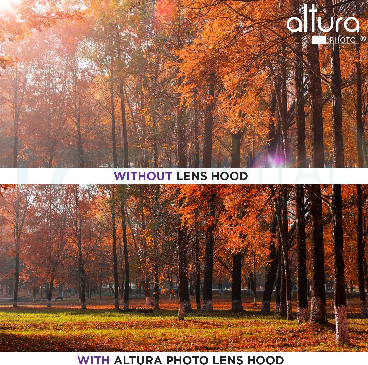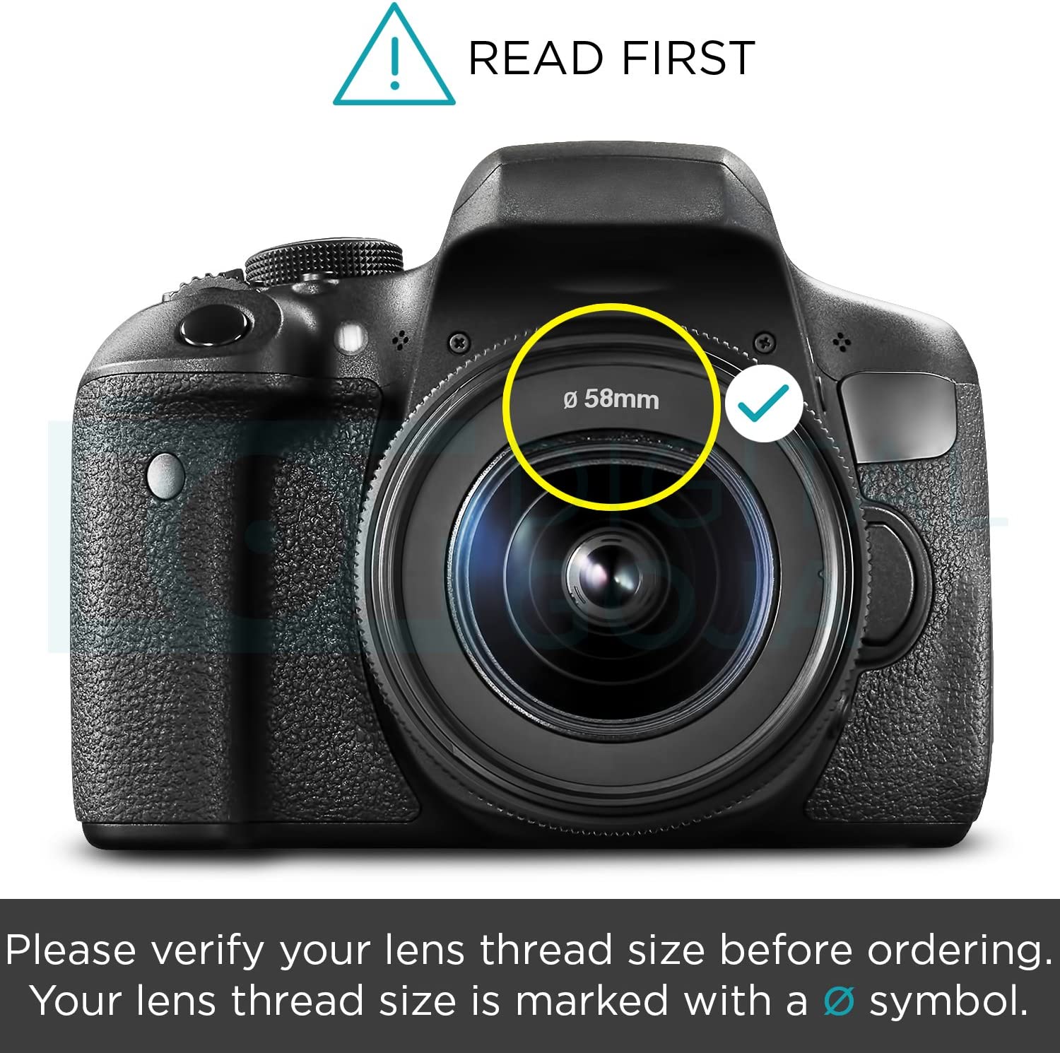 • NOTE: Altura Photo lens hood is compatible with all 58mm lenses. Please verify your camera's lens thread size before ordering. Your camera's lens thread size will be marked somewhere on the lens barrel or printed underneath your lens cap. This number is always preceded by a "Ø" (diameter) symbol. For example: Ø58 = 58mm lens thread size. This is a non-reversible hood.