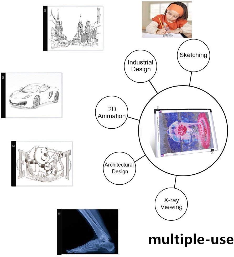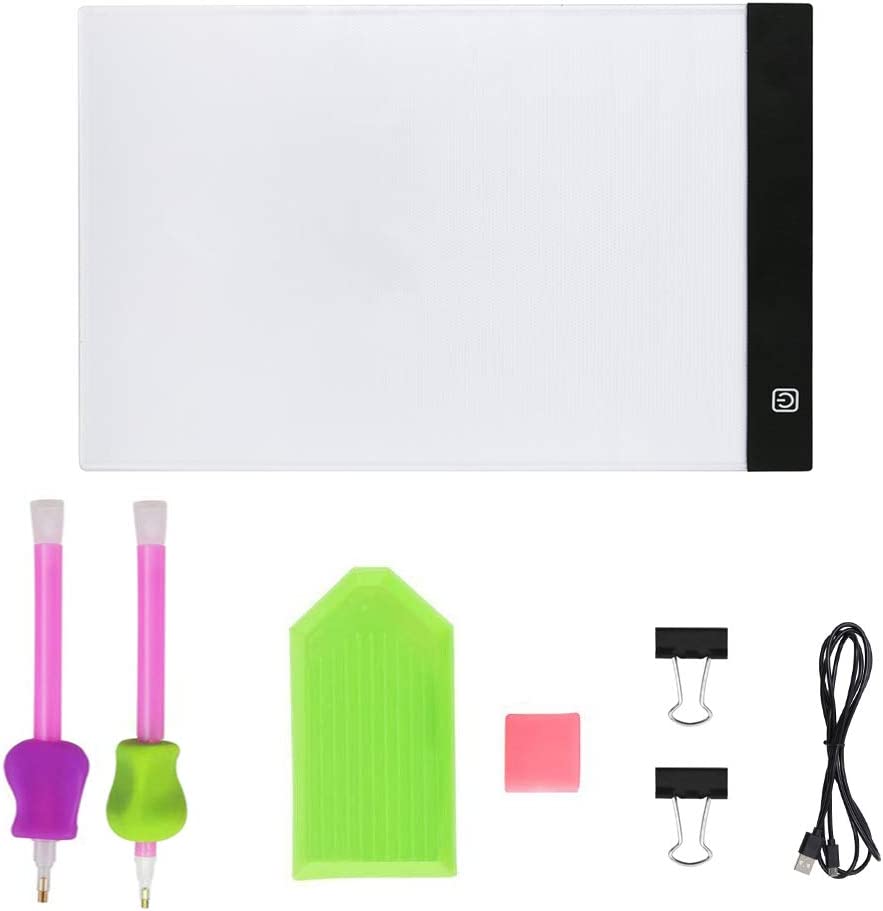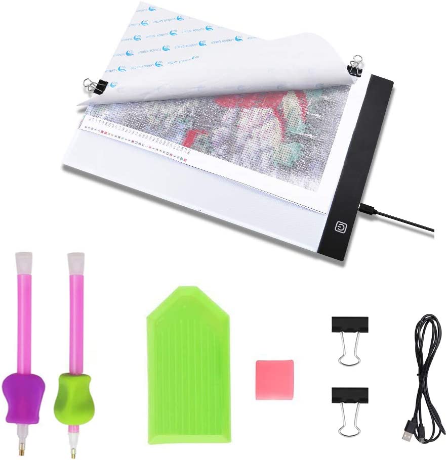 • Double size bigger than A4 size, easy working with bigger canvas. Super bright but design with Eye-Protected Technology.Best for 5D diamond painting full drill, cross stitch kits,embroidery kit, rhinestone cross stitch.