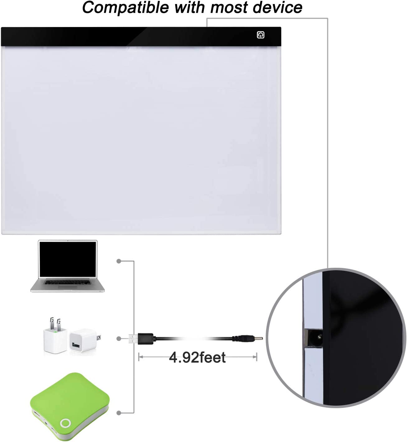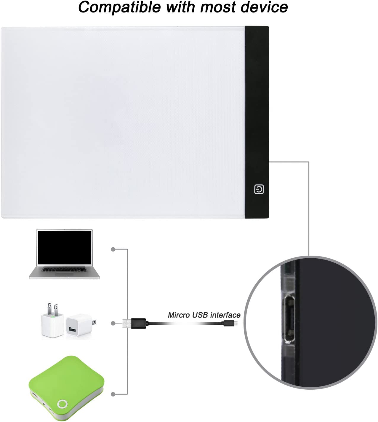 • Simple power way: Use included micro usb cable connect with attached power adapter or power bank, laptop will be ok.
