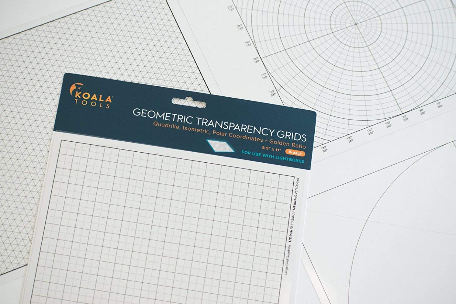 Whether you're an artist, student, engineer, professor, or teacher Koala Tools Geometric Grid Transparencies are a valuable complement to your led light box or overhead projector drawing kits.