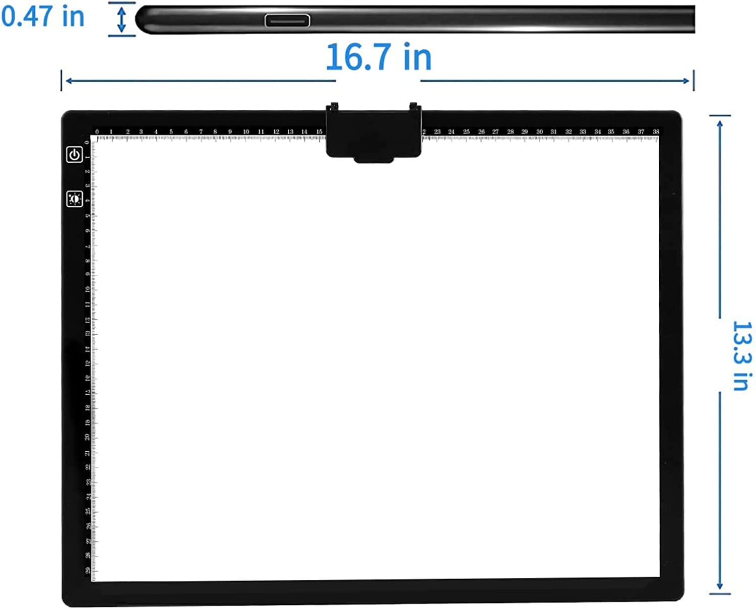 • 💘🎁【Built-in Stand on the Light Pad and Magnet Clip】The bulit-in stand is hidden on the back of the A3 diamond painting light pad, foldable and 6 levels adjustable.The bulit-in stand and the magnet clip on light pad can hold paper and diamond painting canvas easily, you can unfold the stand when you are doing diamond painting or vinyl weeding to your most comfortable posture.
