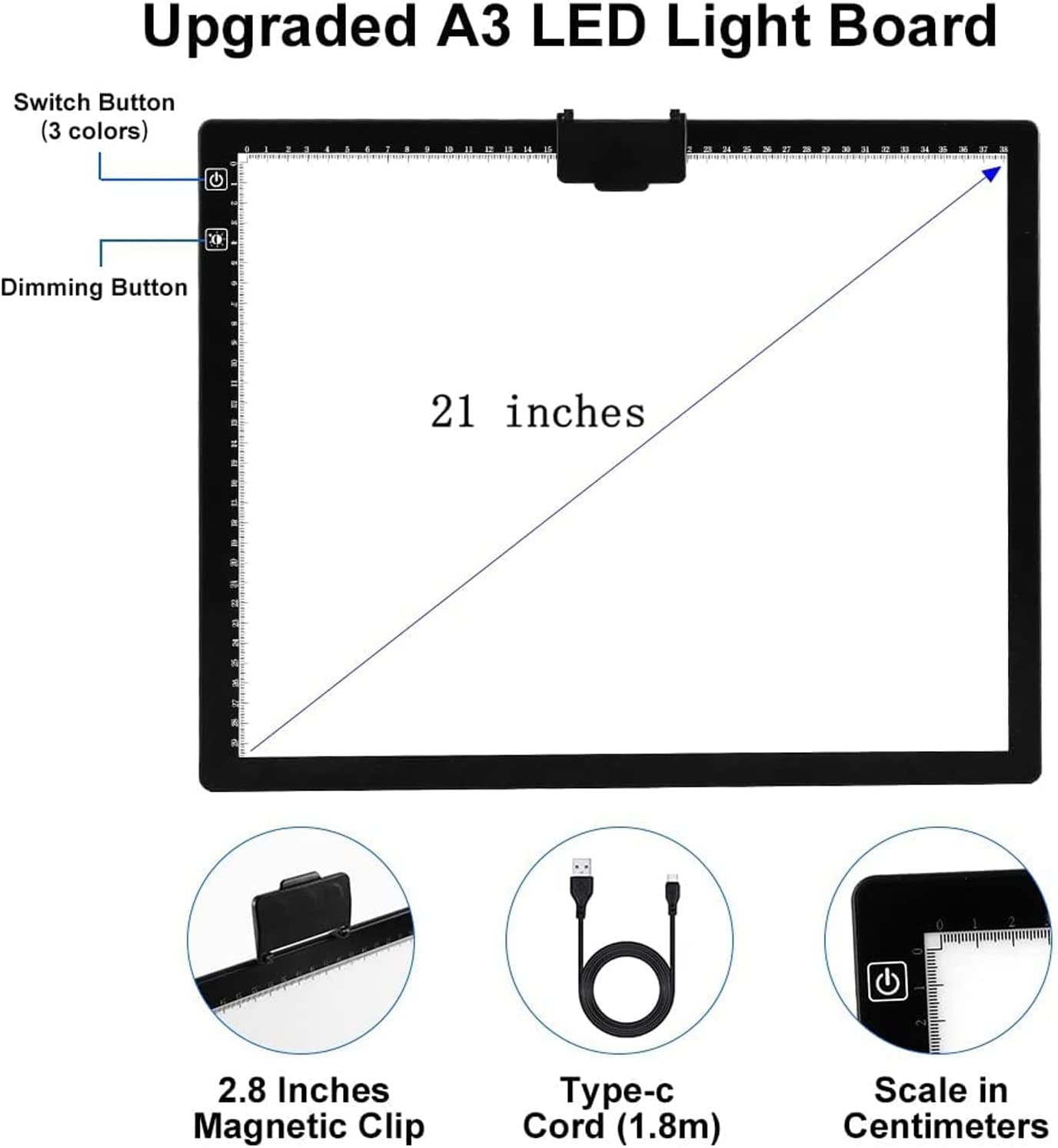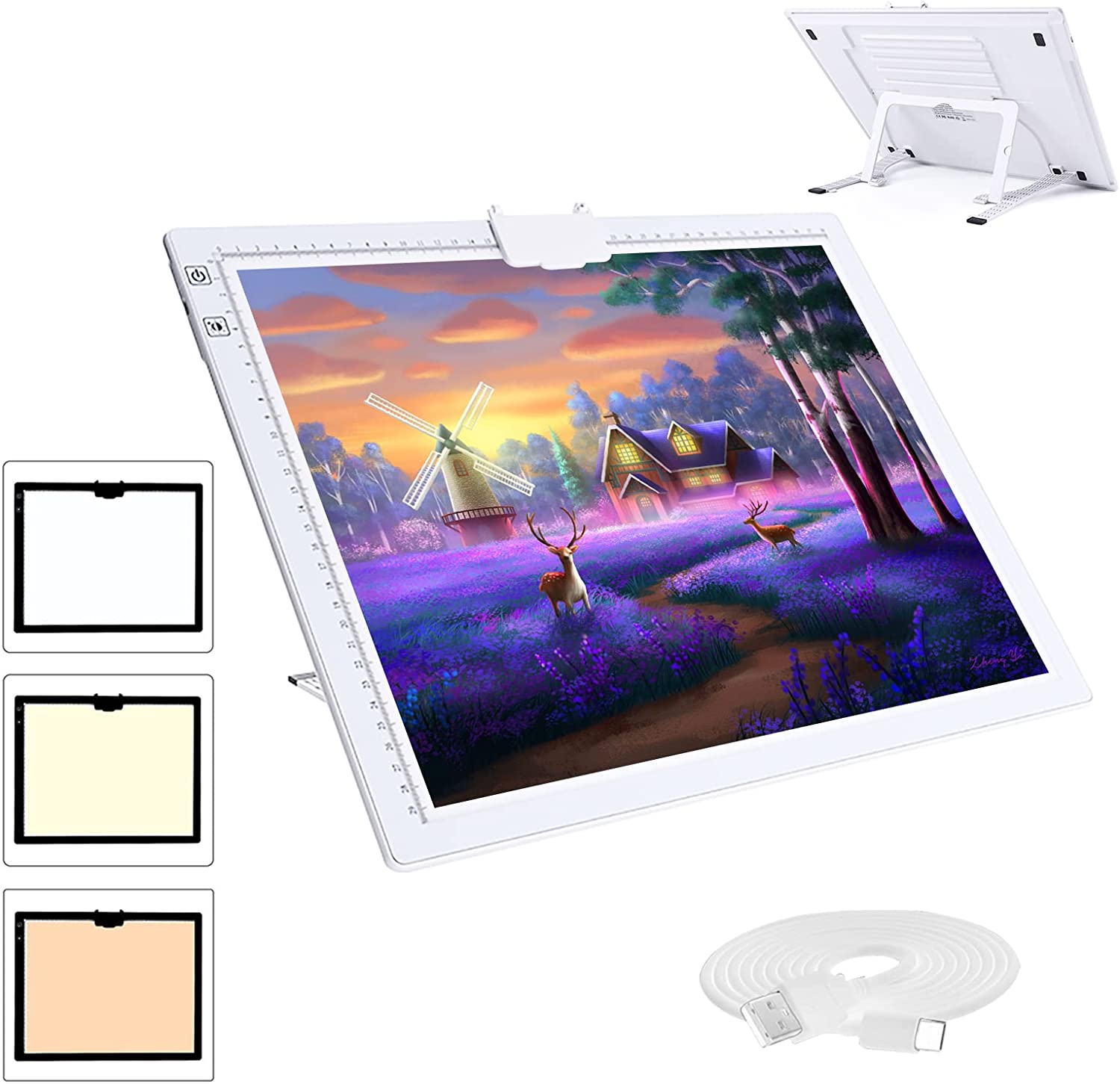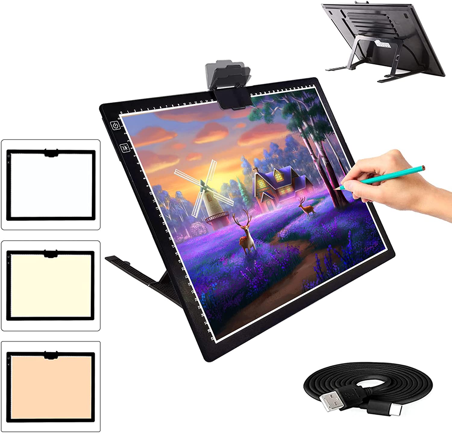 • 💘🎁【Battery Powered and USB Powered with Type-C Port】This A3 Led light pad allows you to enjoy the convenience of using it anytime anywhere with the built-in battery.Works for around 5 hours after charged 2 hours at a time.Both battery mode and charging mode are applicable.