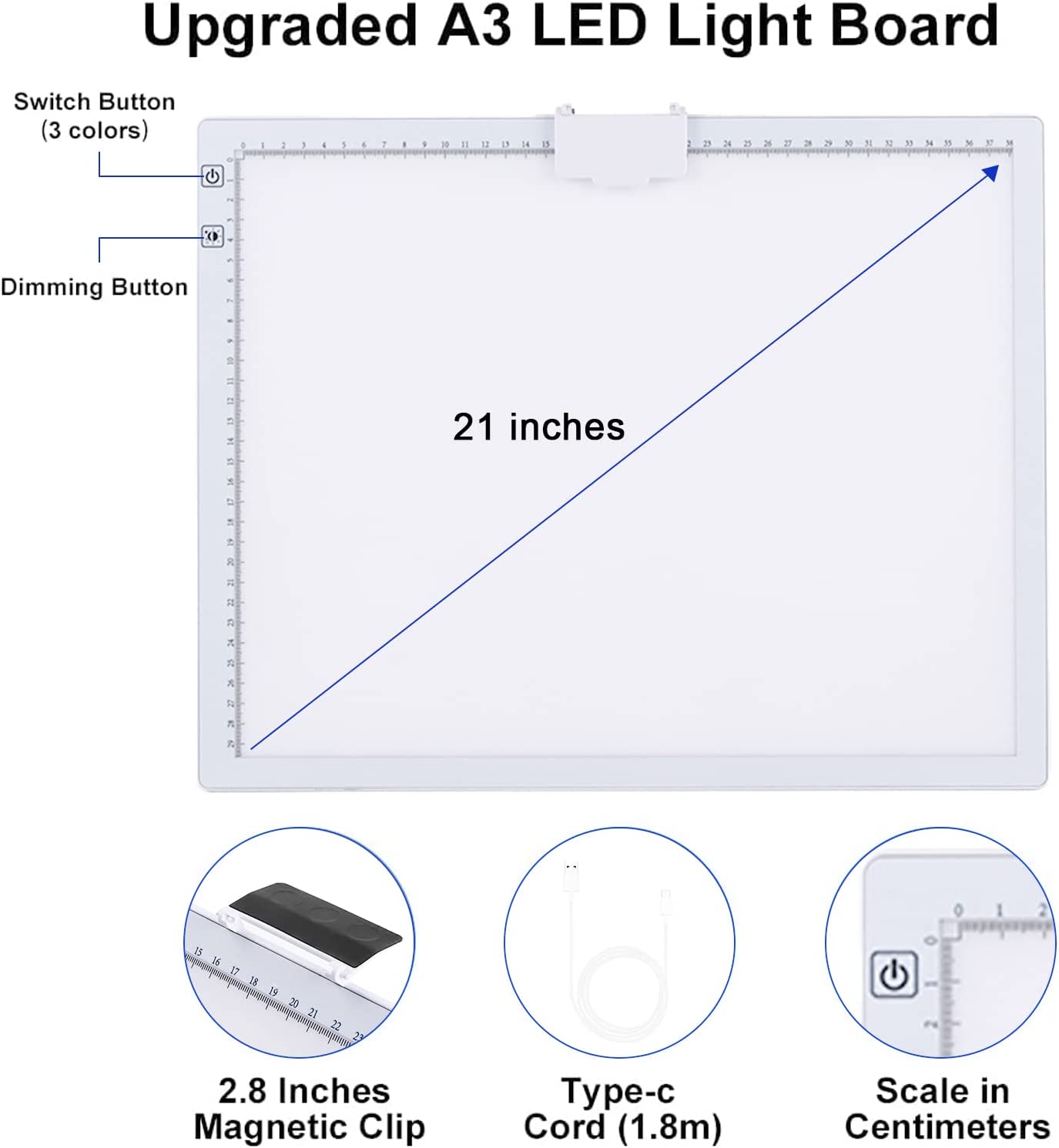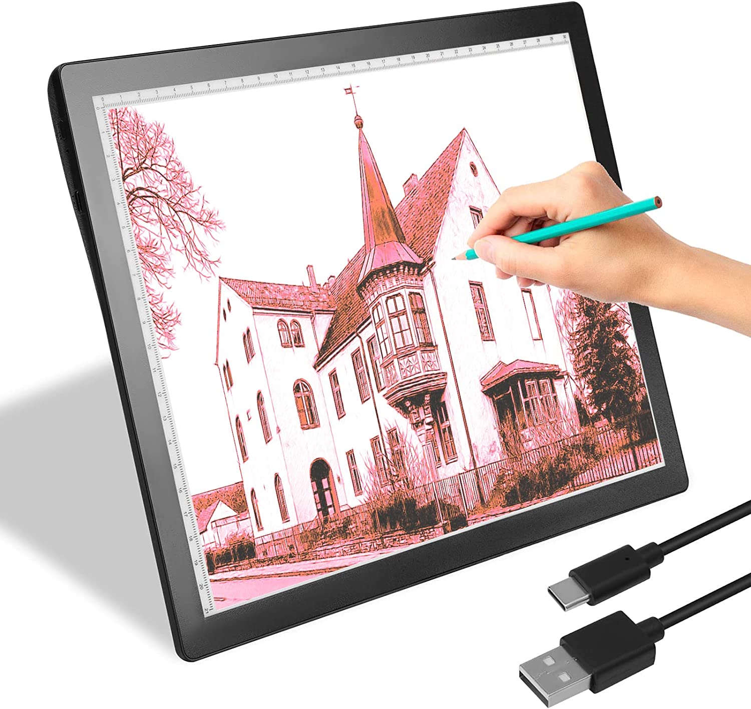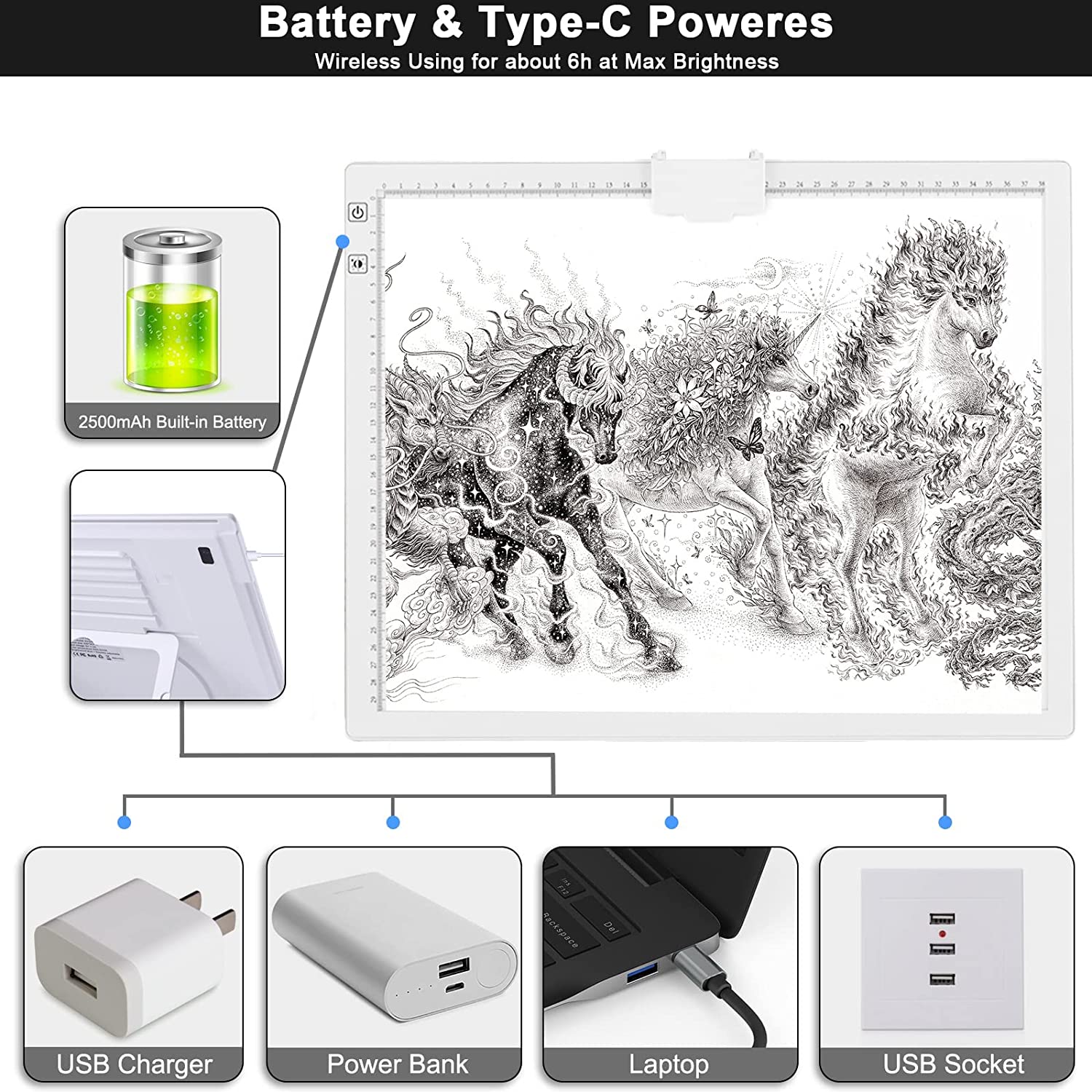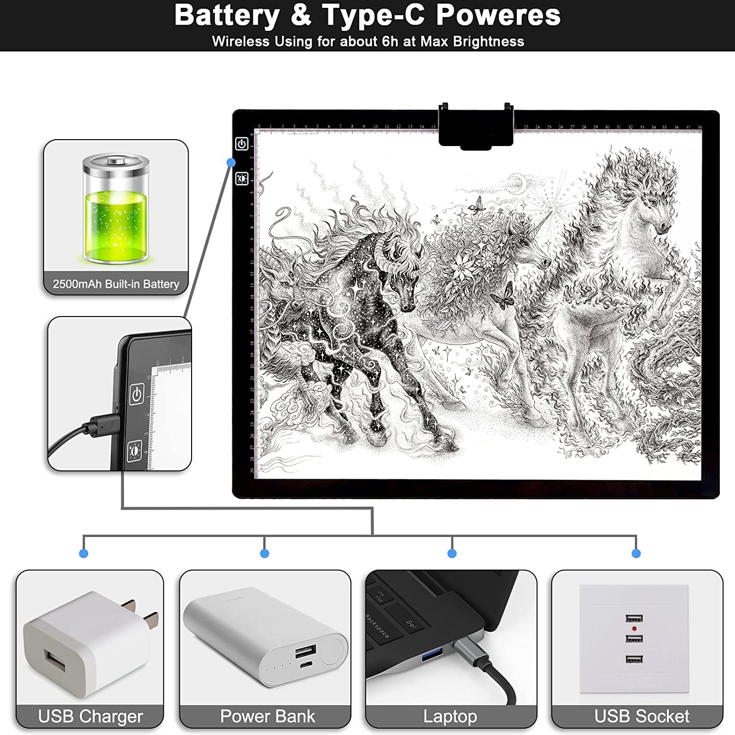 • 💘🎁【Battery Powered and USB Powered with Type-C Port】This A3 Led light pad allows you to enjoy the convenience of using it anytime anywhere with the built-in battery.Works for around 5 hours after charged 2 hours at a time.Both battery mode and charging mode are applicable.