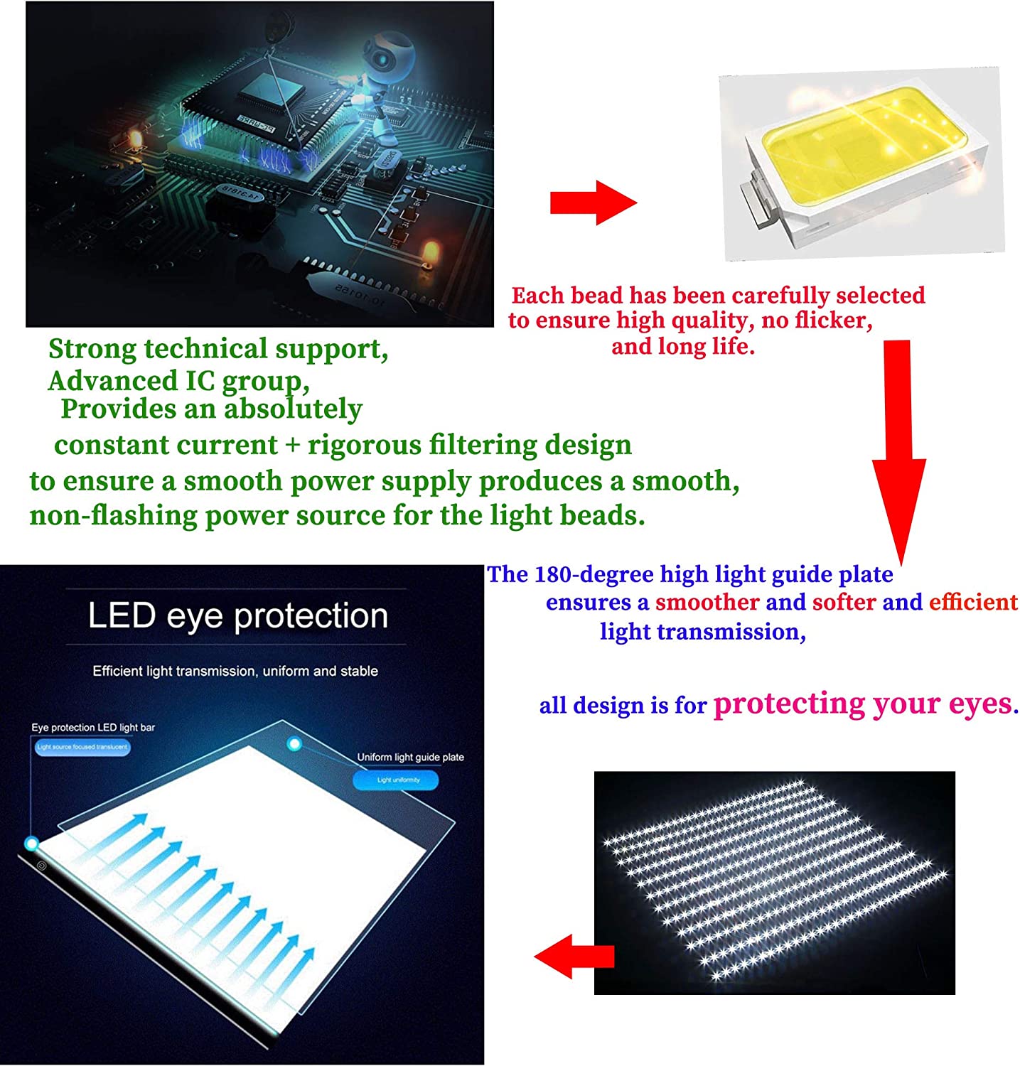 • Eyesight-protected Technology: ►◄Flicker-Free and eco-friendly LED, advanced eyesight-protected technology, no more sore eyes after long-hour working.