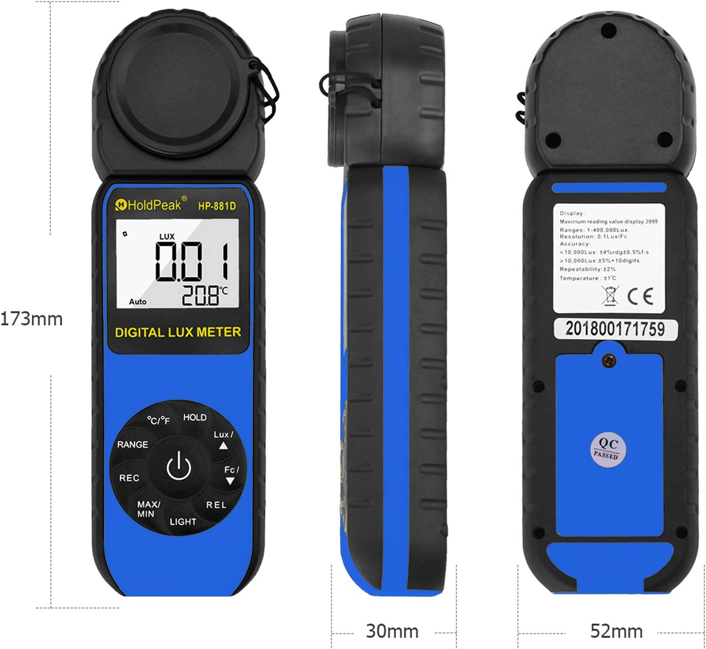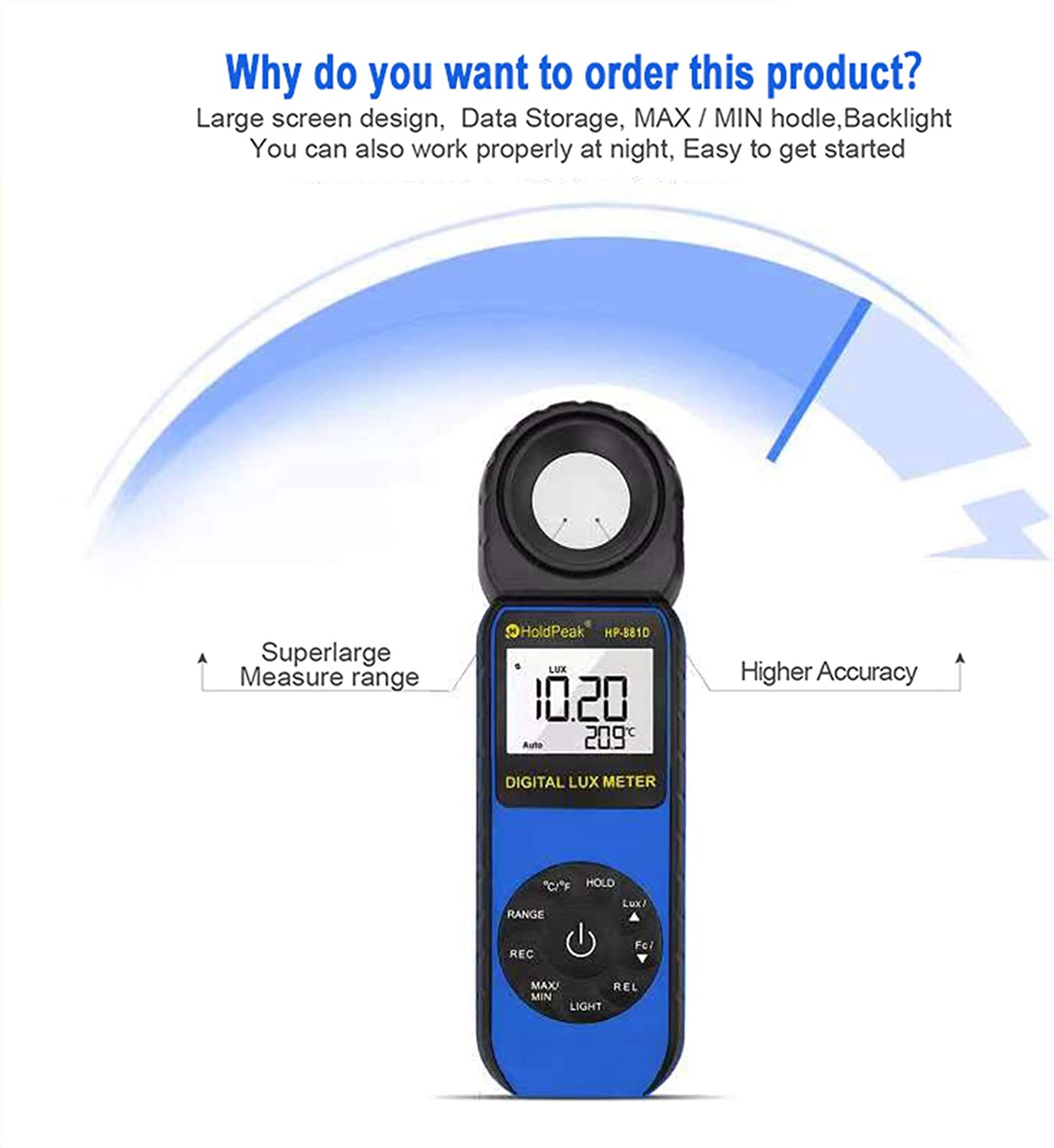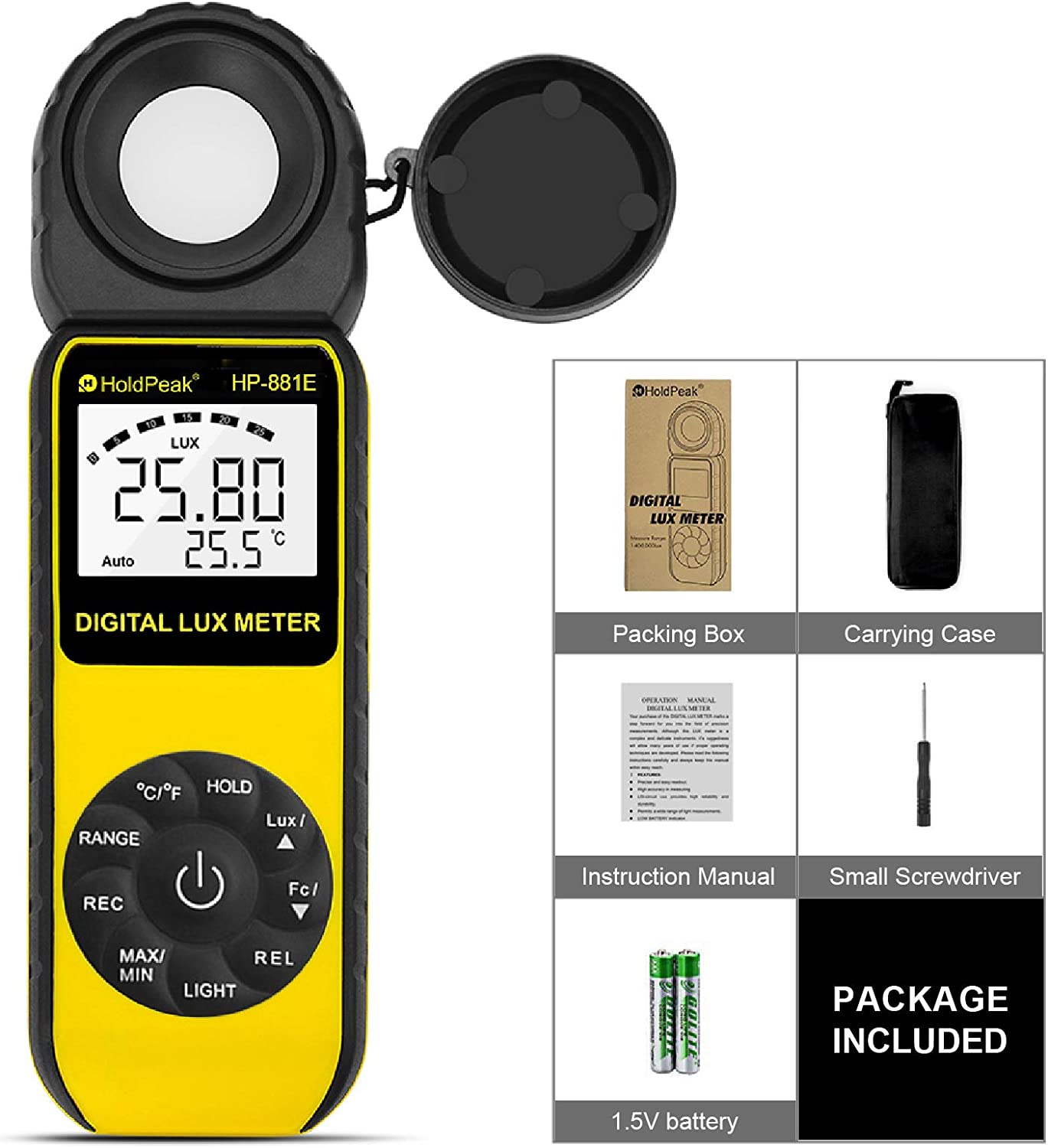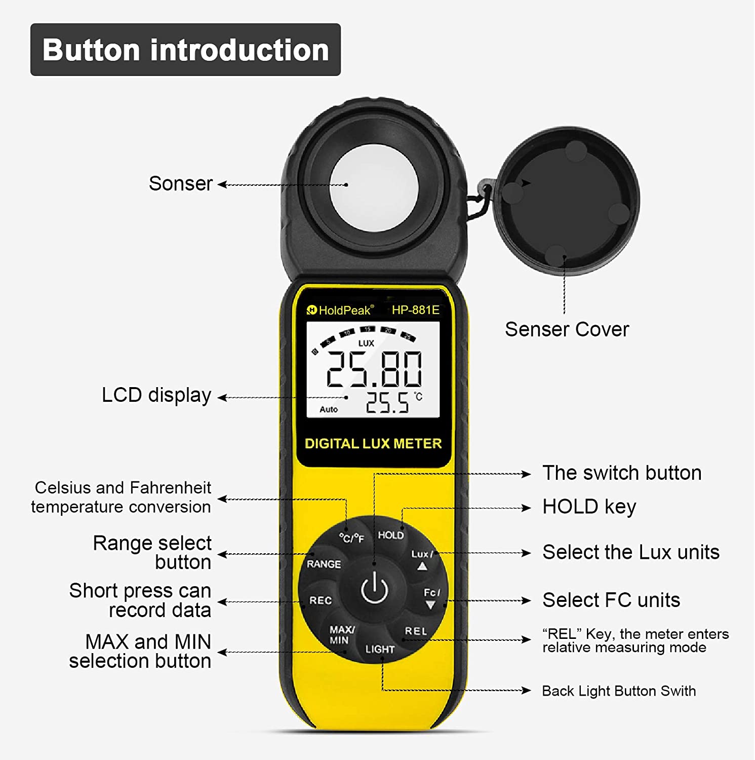 • ☀【Professional LED Light Meter】 HP-881E come with wide measure range 0.1 - 300,000Lux/1 - 30,000FC,So whether you're a photographer, a designer, or a plant lovers,this light meter will meet all your needs.