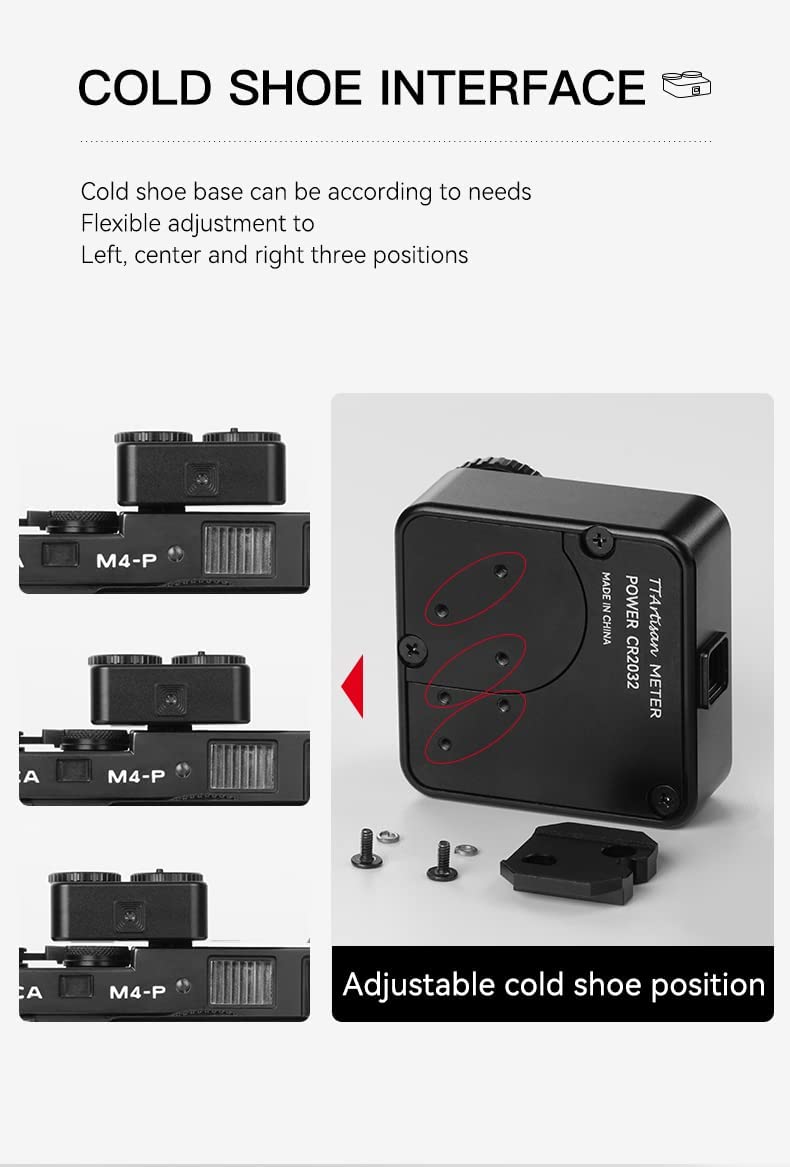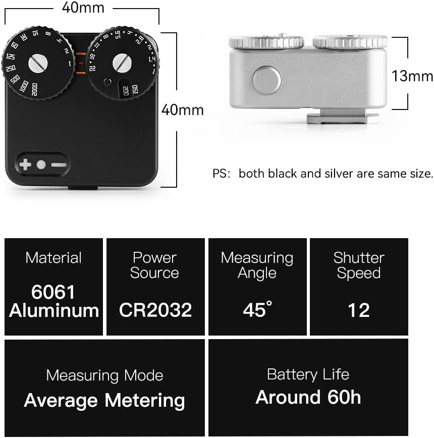 • 💖【High precision】Accurate light measurement.The Black Meter from TTArtisan is a sturdy aluminum meter that reads reflective light at a 45° angle. The meter has shutter speeds of 1 to 1/2000 second.