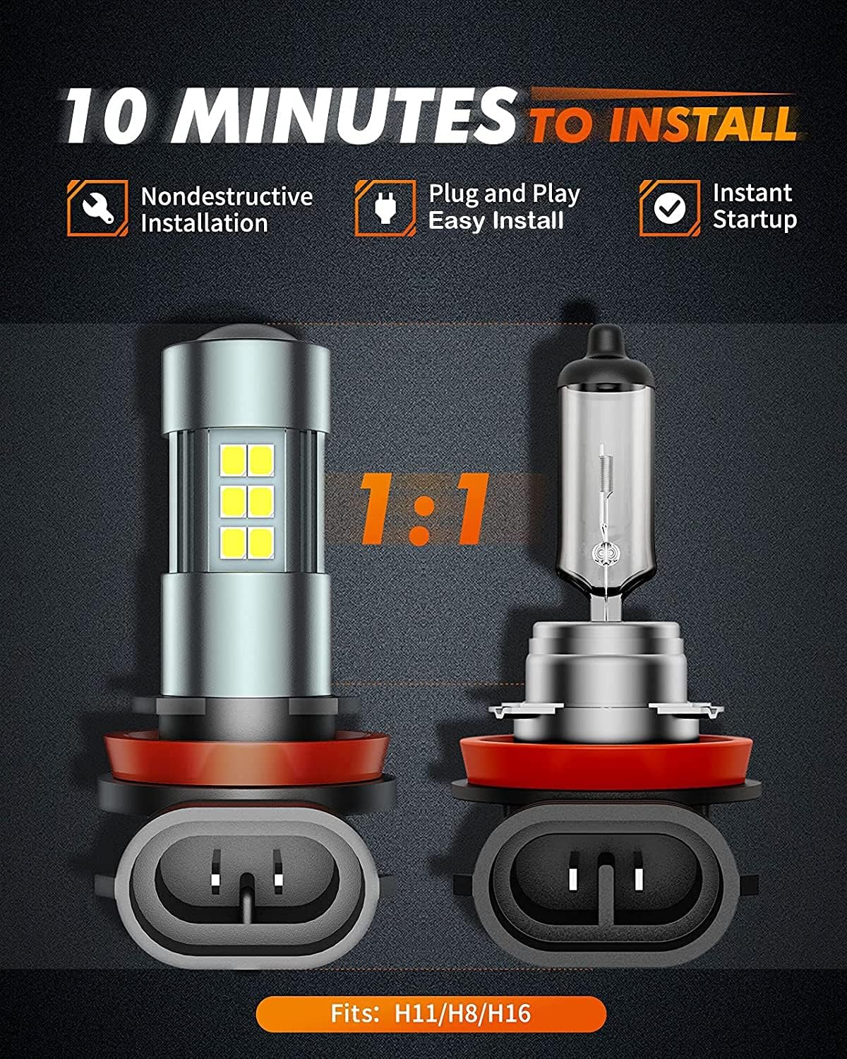 • 10 Minutes Installation: Almost 1:1 compact design makes it become one of the closest size of halogen bulb in the market. Installing SEALIGHT H11 LED bulbs is just a breeze