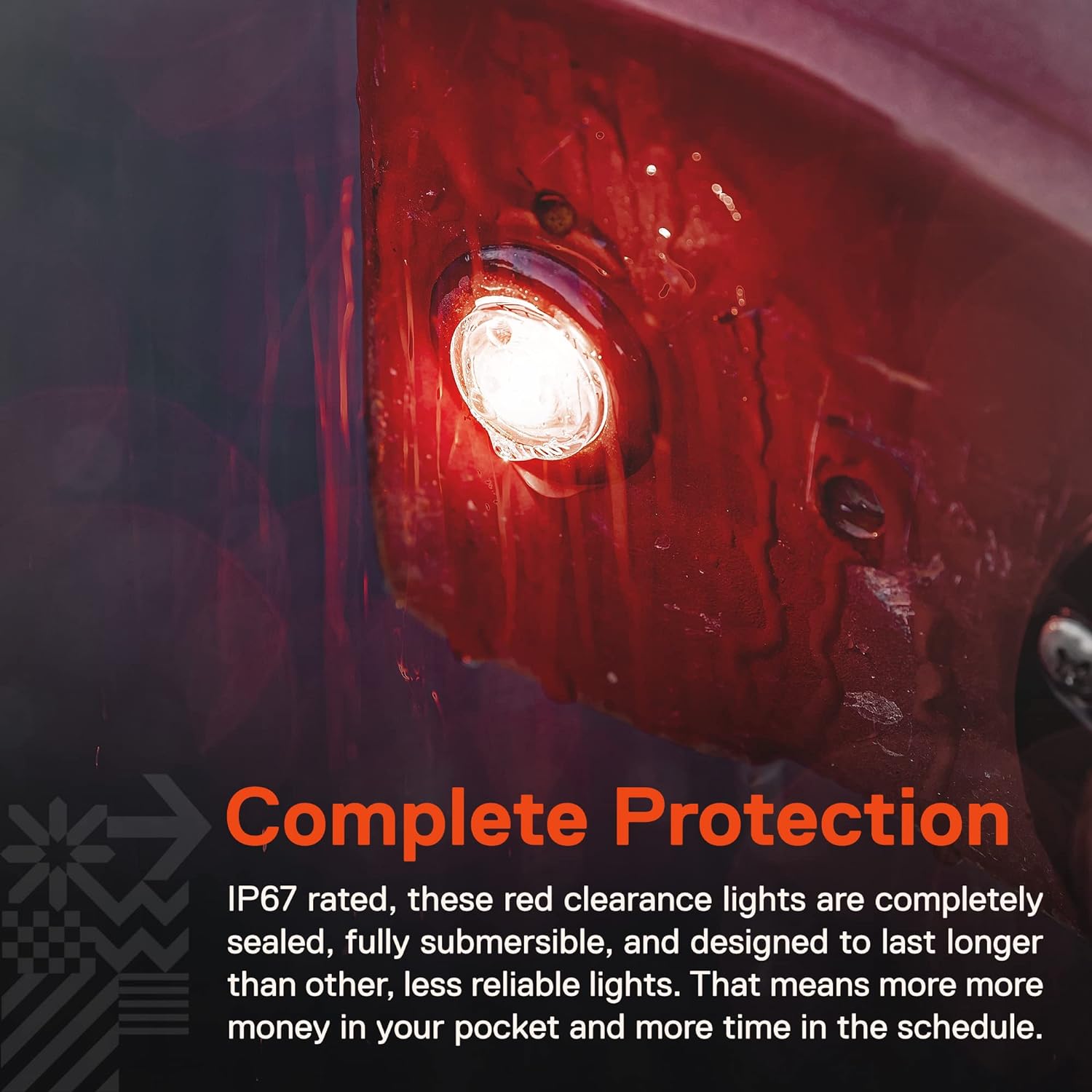 • FULLY SUBMERSIBLE - IP67 rated, these clearance lights are completely sealed, fully submersible, and designed to last longer than other, less reliable lights. That means fewer weather-related failures and more time in the schedule.